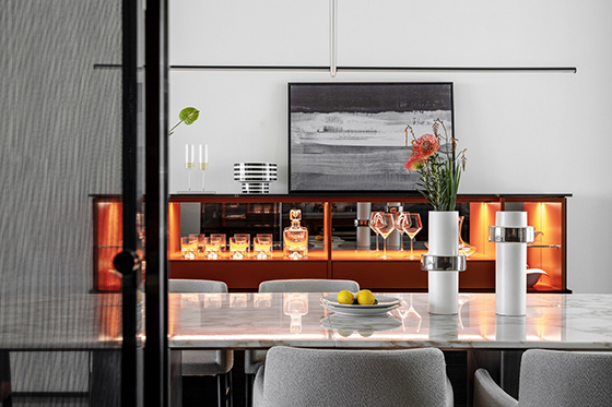 the interior of the apartment designed by well-known high-end retailer Jacci Mayee, Porro's strategic partner in the city,