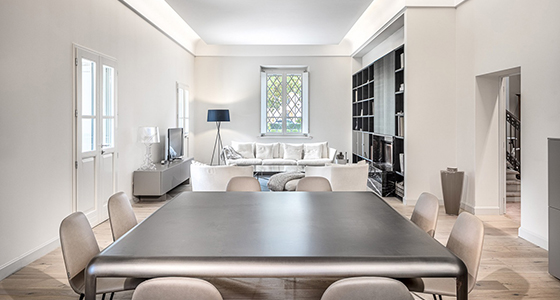 Submerged into its green surroundings, this private retreat in the Mantuan countryside has been renovated focusing on the charm of its historic spaces and the best contemporary design. Its interiors are curated by Ghiroldi Design, Porro’s dealer and point of reference for furniture and interior design in Mantua, focusing on airy and livable spaces, to compose a universe of relax in shades of white and gray, warmed up by Porro collection of woods and suggestively overlooking the park.
