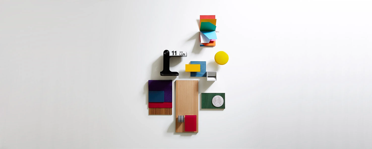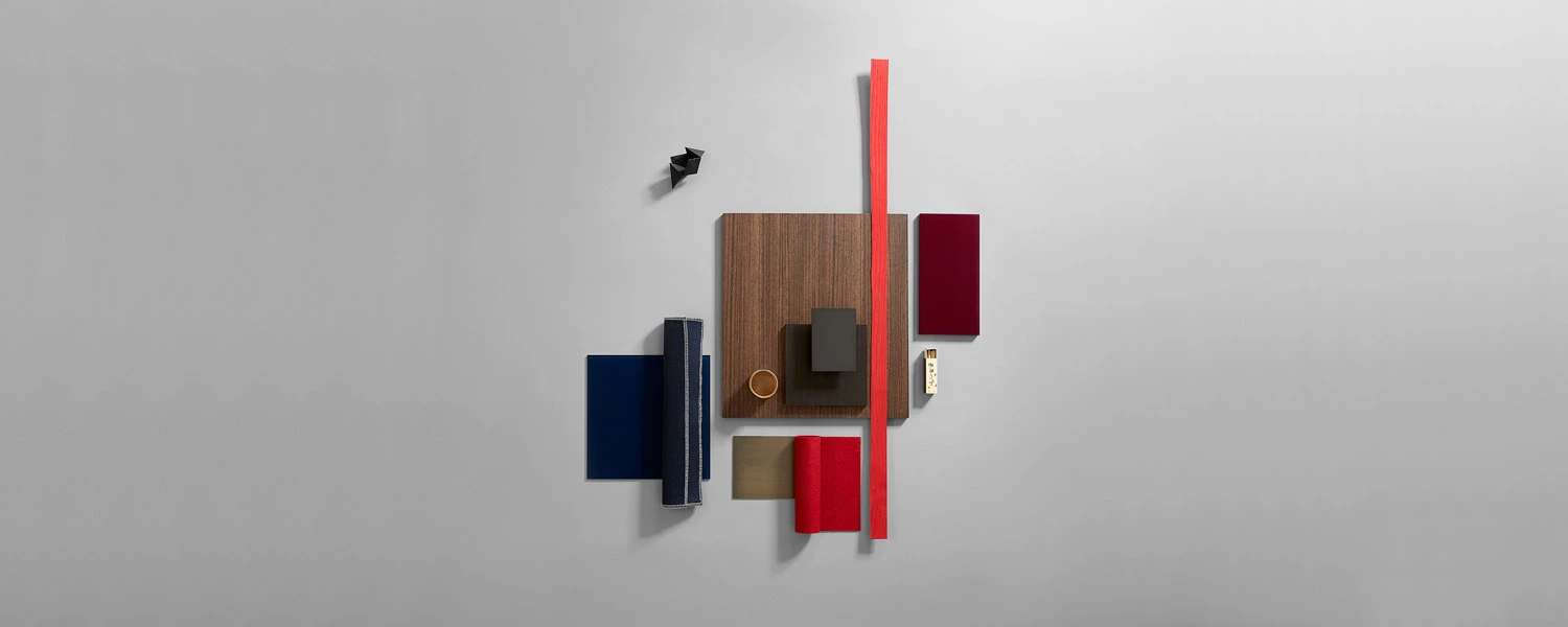 / Solid woods, strong chromatisms, graphic plays: a manifesto-home with a 50s imagination, beautified by pieces that display industrial manufacturing as well as items recalling handicraft. A versatility that is never accidental, where each visual contrast is accurately studied. The Ghiaccio armchair in natural ash with a cherry-coloured fabric upholstery and the Modern cupboard with a tailoring esprit, matching wooden closed and open units with matt Rosso Cina, Giallo Zolfo and Blu Reale interiors. Contrasts between bulky and empty spaces enliven the System bookcase in heat treated walnut and transparent crystal sliding doors, framing the dining room. The plasticity of the Galileo table in heat-treated ash, with an oval surface and sensually tapered legs, comes with the rigorous yet soft lines of Neve, in red stained ash, reinterpreting traditional wooden chairs with a contemporary style.