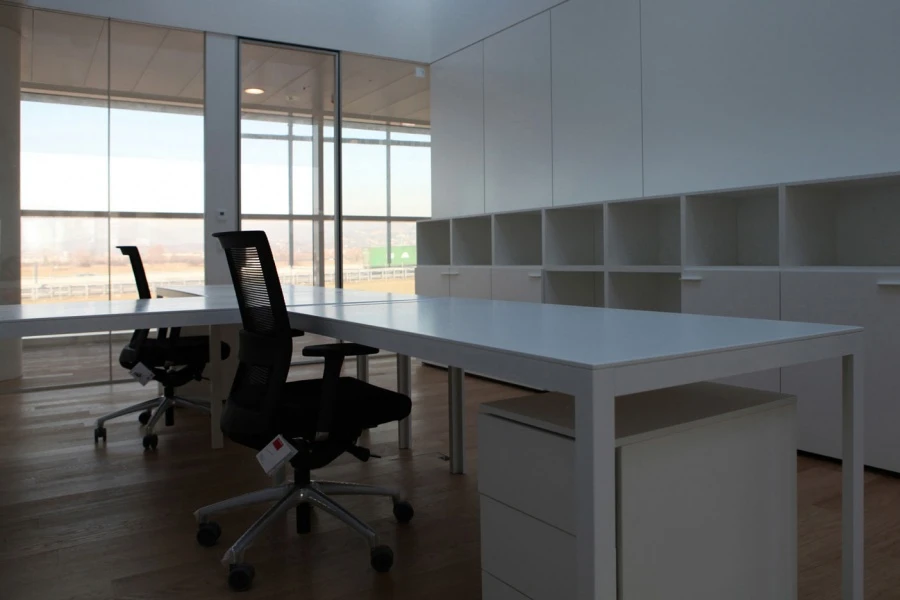 As for the office in the basement next to each laboratory, the working areas consist of a corner Fractal composition – the perfect matching of a table and a perpendicular office console – an office chest of drawers and a wall unit Modern, in HDS, the high resistance surface, the most suitable product of any intensive use.