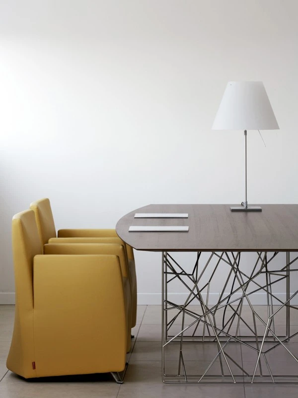 The protagonist of the management area is Synapsis, the ultra-light table designed by Jean Marie Massaud and available with wooden top, accentuating its organic design. A spider’s web of metal tubes welded together delicately supports a natural wood top in the warm tones of Mongoy, perfect for a more casual meeting room.