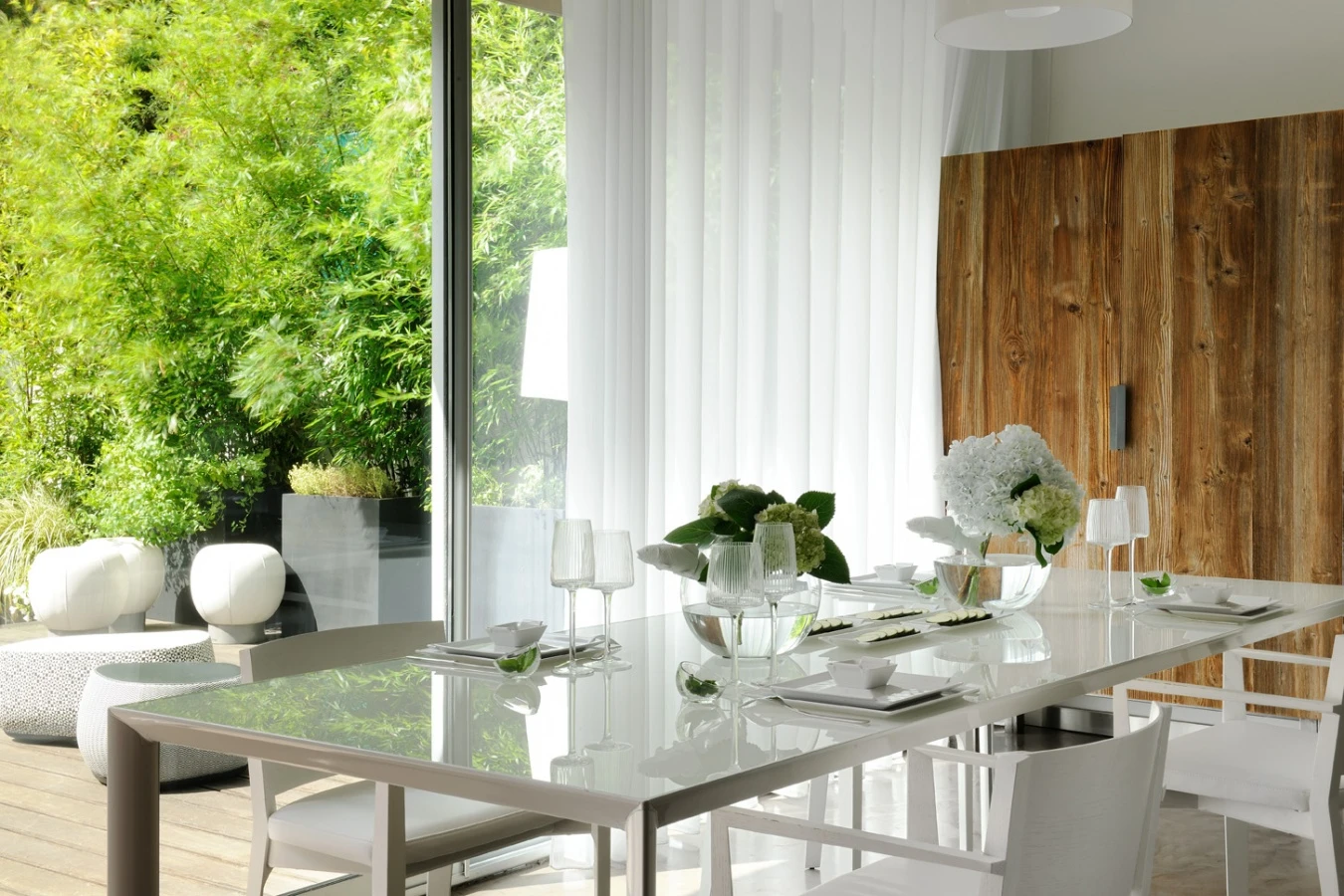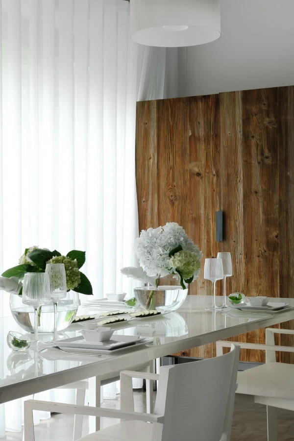 Fractal and Como conjugate rigor and softness for a dining room with a fresh identity, at the same time current and long lasting.
