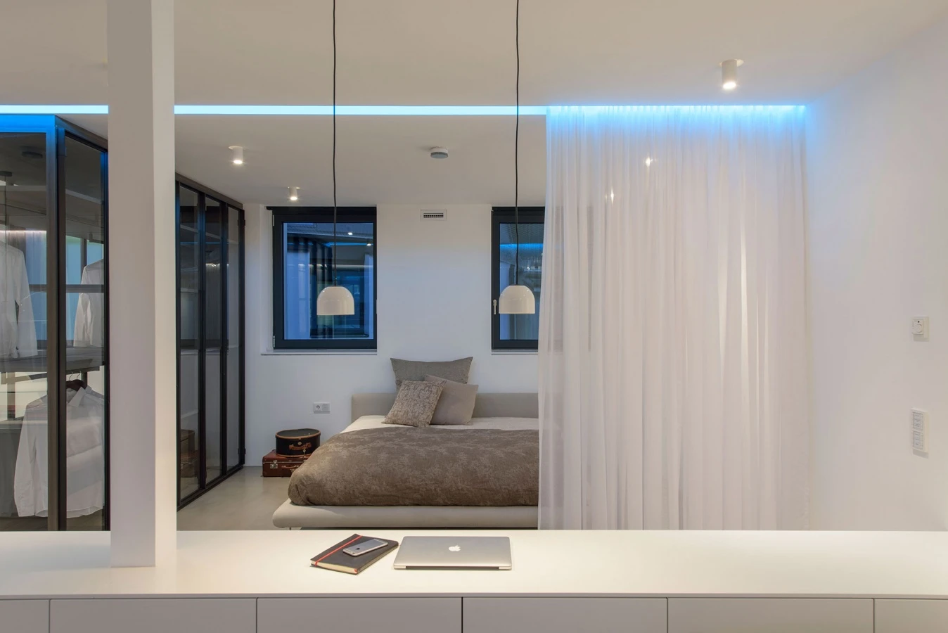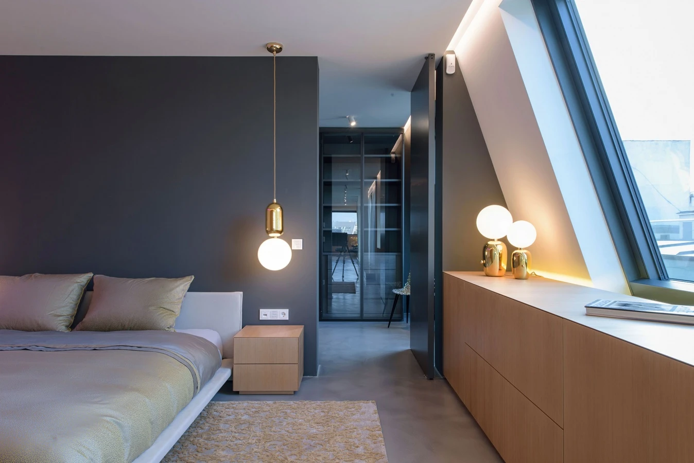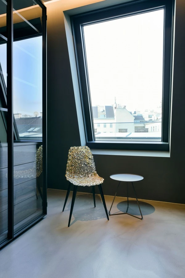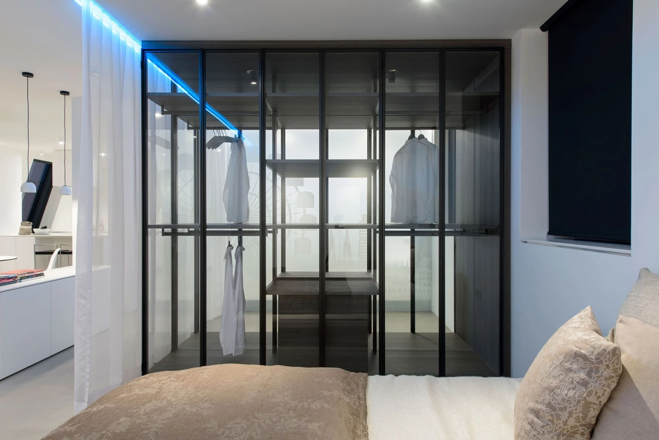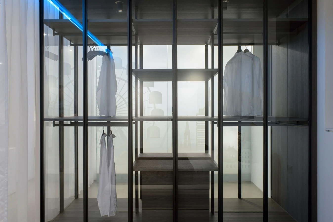 With a magnificent view of the Vienna city centre, this top-quality interior by steininger.designers revolves around Porro’s Storage Air self-standing walk-in closet. With transparent doors, sides and backs, it’s a real architecture in the space, which separates the areas graphically while providing exceptional functionality.
