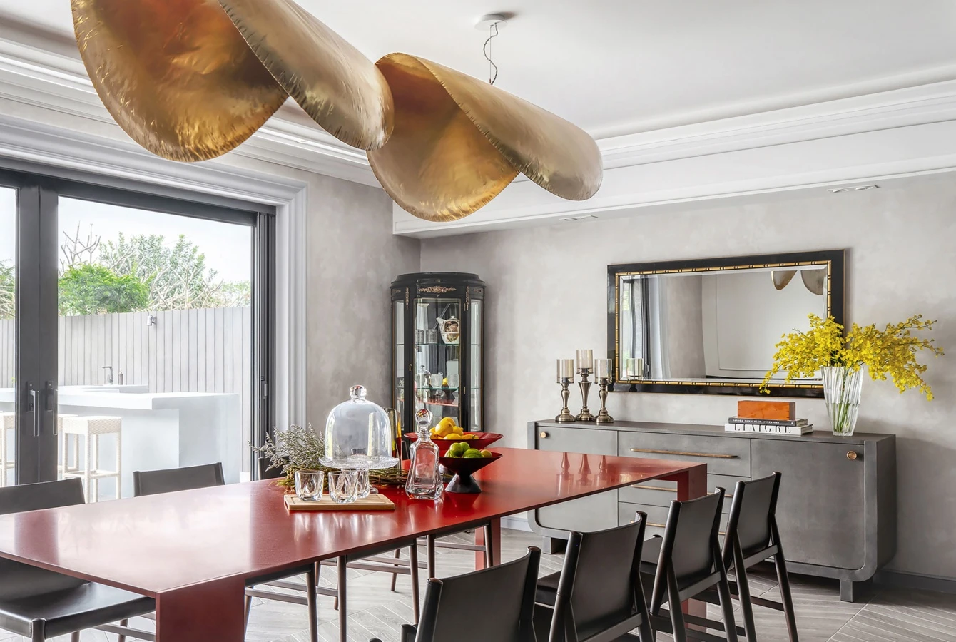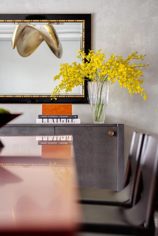 In Hong Kong on the Sai Kung peninsula, interior design studio Pocket Square relies on the best Italian design to breathe new life into the interior of a three-storey private property. The home is conceived as a sophisticated retreat for privacy, relaxation and aesthetics: the dining area features Porro's imprint with Piero Lissoni's elegant Metallico table in antique red and Voyage chairs with precise lines designed by GamFratesi. Metallico's unique finishing is obtained through a high-thickness catalyzed coating, followed by manual polishing and waxing, bearing witness to the search for a not-flat color, rich in nuances and textures, capable of creating a sense of depth and shininess like the oil paintings of the 17th century. Voyage, on the other hand, is made up of an exposed framework in tapered solid maple; across it, a saddle leather covering is stretched and gives shape to a very comfortable and ergonomic seat and backrest.