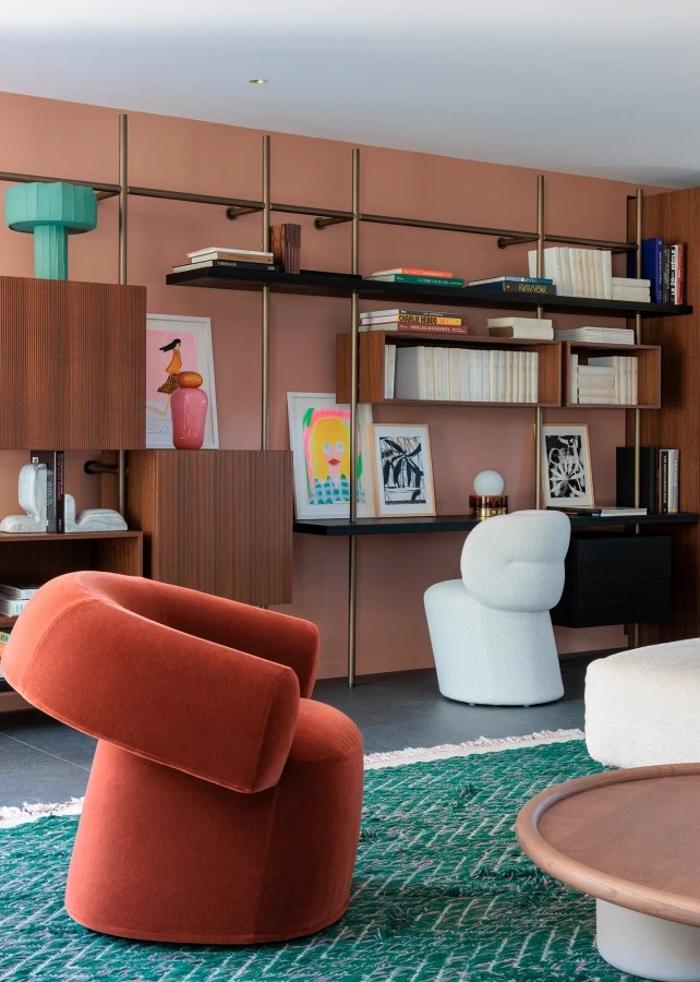 Sophisticated woods, Made in Italy furniture and art pieces: Porro design enters the colorful villa renovated by decorator Claude Cartier in a small medieval village a few kilometers from Lyon.