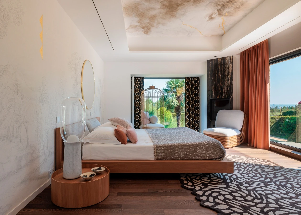 In the bedroom, the Taiko bed by Piero Lissoni for Porro chooses the blonde and delicate notes of heat-treated elm, for a pleasant atmosphere that invite to relax.