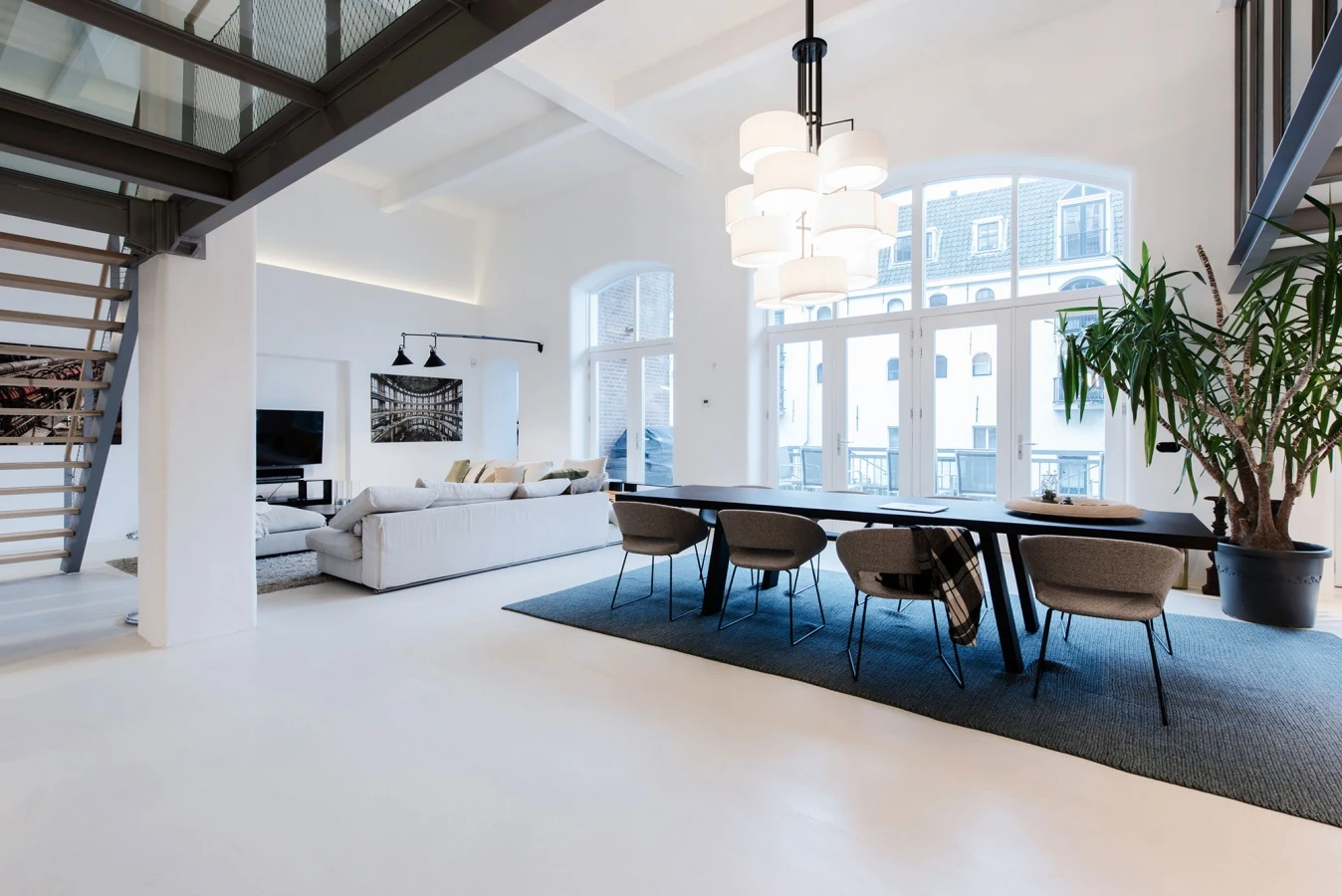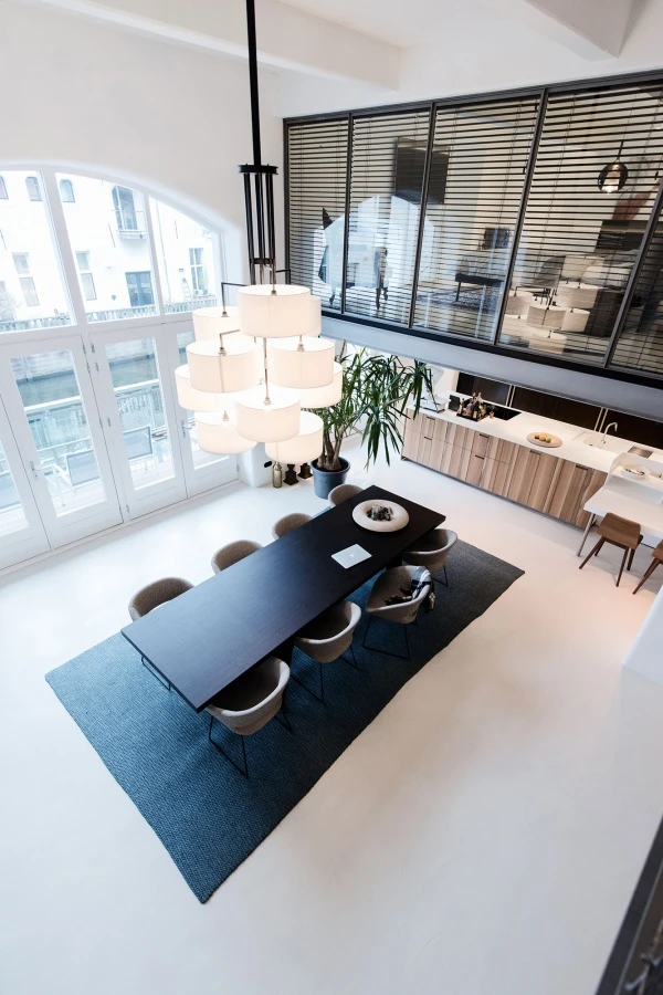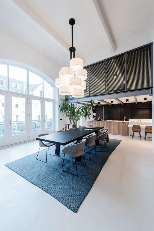 The simplicity of design, the elegant beauty and the customizable functionality of Porro design are the protagonists of a magnificent private loft designed in Amsterdam by ClassicDesign.it, a showroom with forty years of experience in the furniture sector: a double-height white space with an evocative view of the city, warmed up by fine woods and dark metal details.