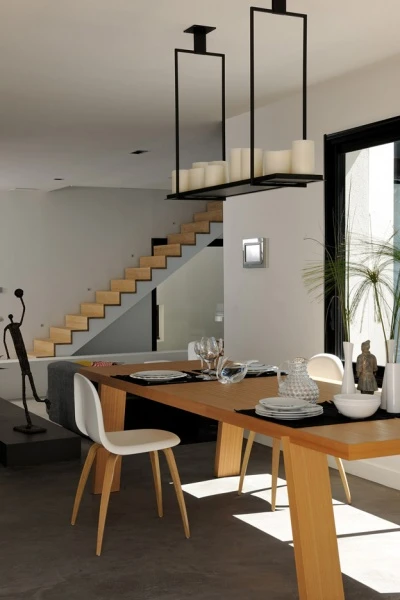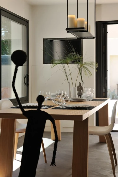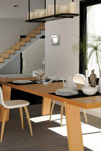 The dining room designed by Claude Cartier for this apartment in Lyon, shows the essential elegance of design of Porro collection. A space declined in neutral and natural shades wraps around the simplicity, the equilibrium and the symmetry of the Minimo table in natural hemlock solid wood.
