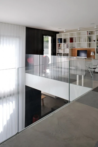 The mezzanine shows a zone defined by versatile geometries of System, intelligent and flexible, it can be used as modular bookcase and also for electronic media and it is able to improving efficiency and appearance of a space.