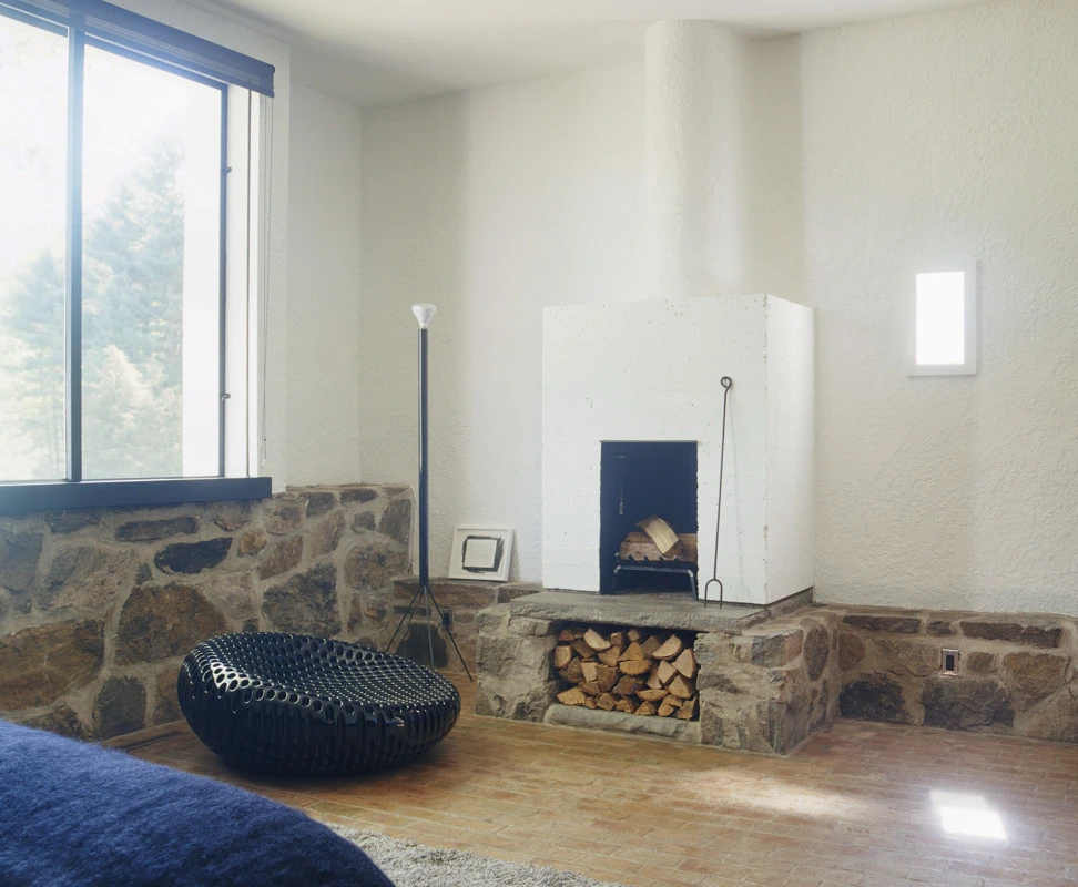 In the bedroom, on the other hand, at the feet of the bed is the fun Truffle perforated armchair designed by Jean Marie Massaud, this too black lacquered: informal and highly versatile, it is suitable for all the rooms of the house, as well as being a perfect small armchair for outdoors.