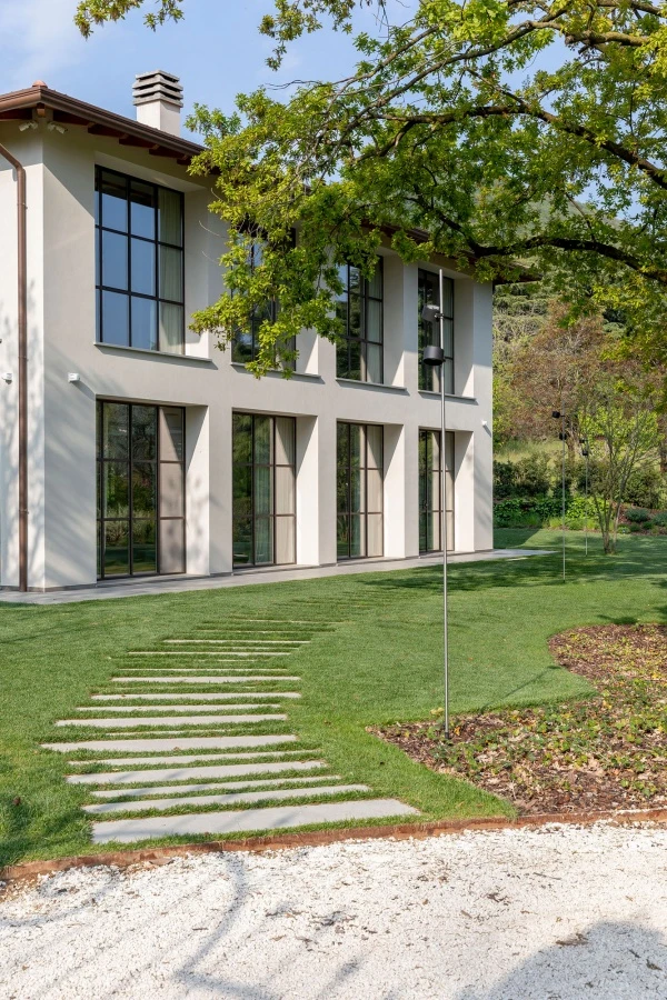 The best contemporary design dialogues with the lush greenery of Nature in the single-family house designed by Marco Carini Studio in the hills of Franciacorta.