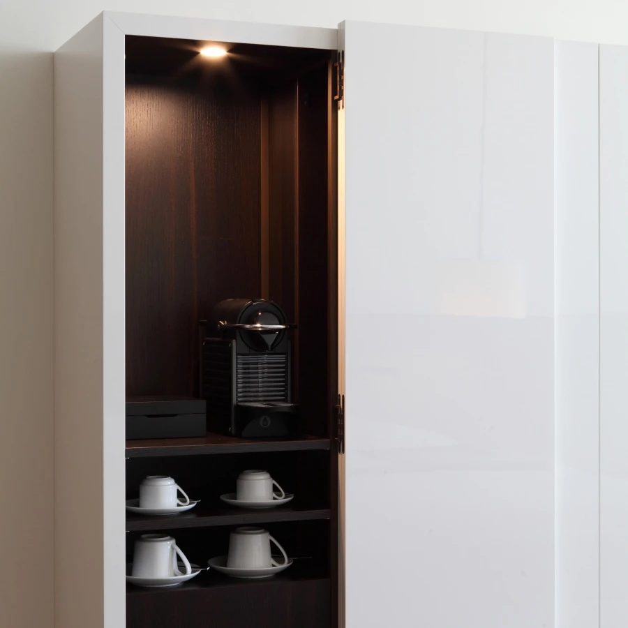 Porro products: Tiller cupboards, Boutique Mast walk-in closets, Groove bench.