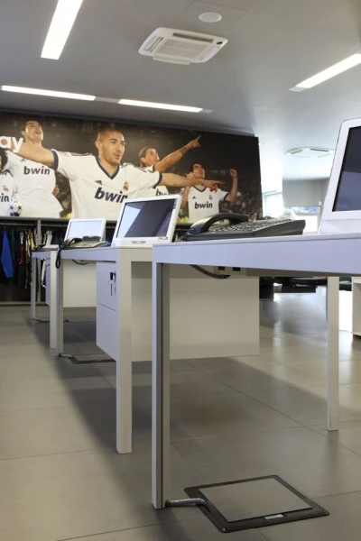 Porro furnishes the reception area, the offices and the new showroom devoted to sport, authorized and certified retailer of the best international brands, through 3 different typologies of supplies, and shows Porro predisposition to contract and the possibility to satisfy with flexibility the demands of each client. From manufactered products like Fractal table, to an existing design modified to comply with specific requests, like Modern and Storage systems, presented in customized colors and compositions, to real tailor made products, like the reception desk and the tables used to expose the shoes, specifically designed to meet the specific functional requirements of the space.