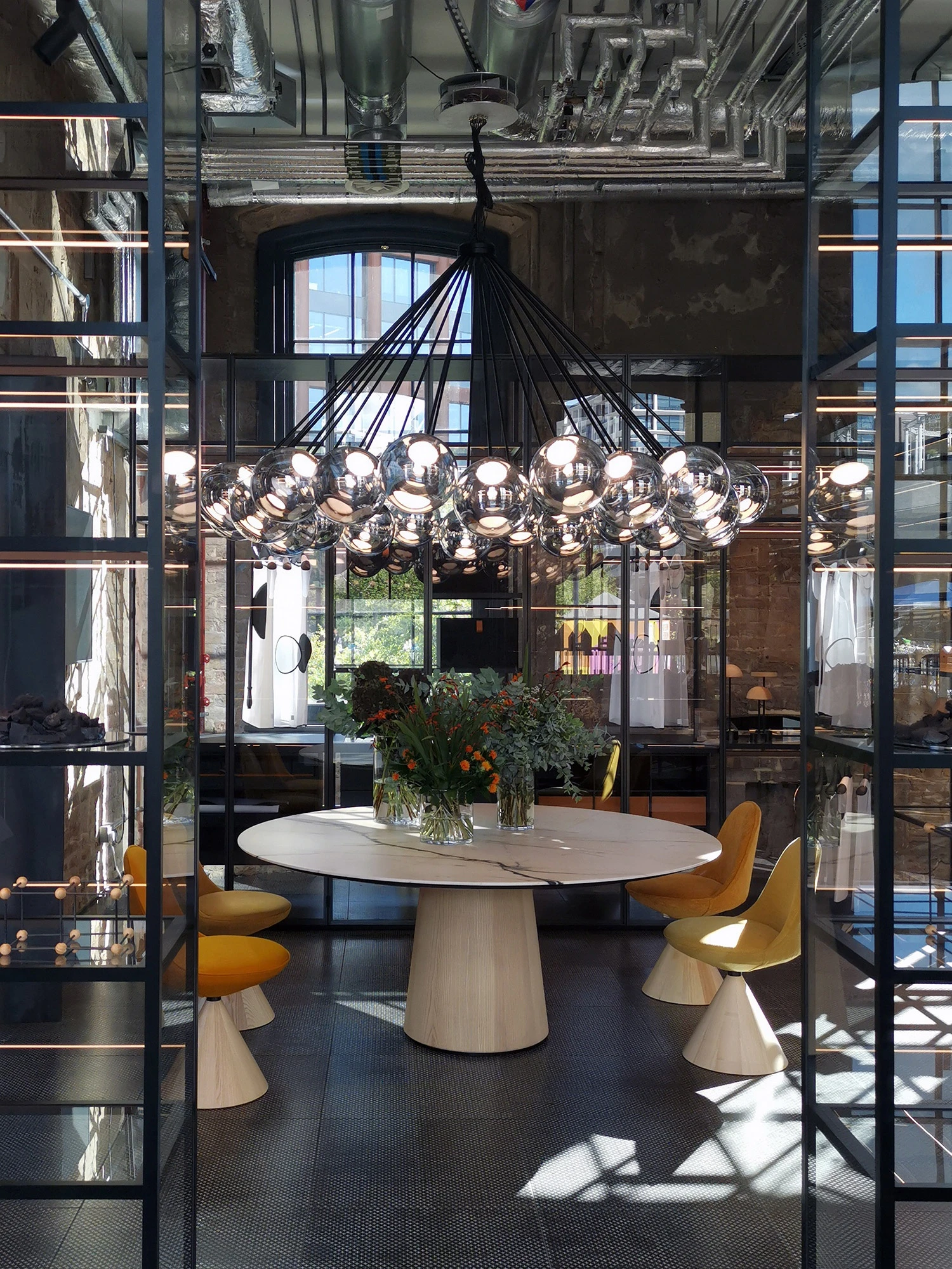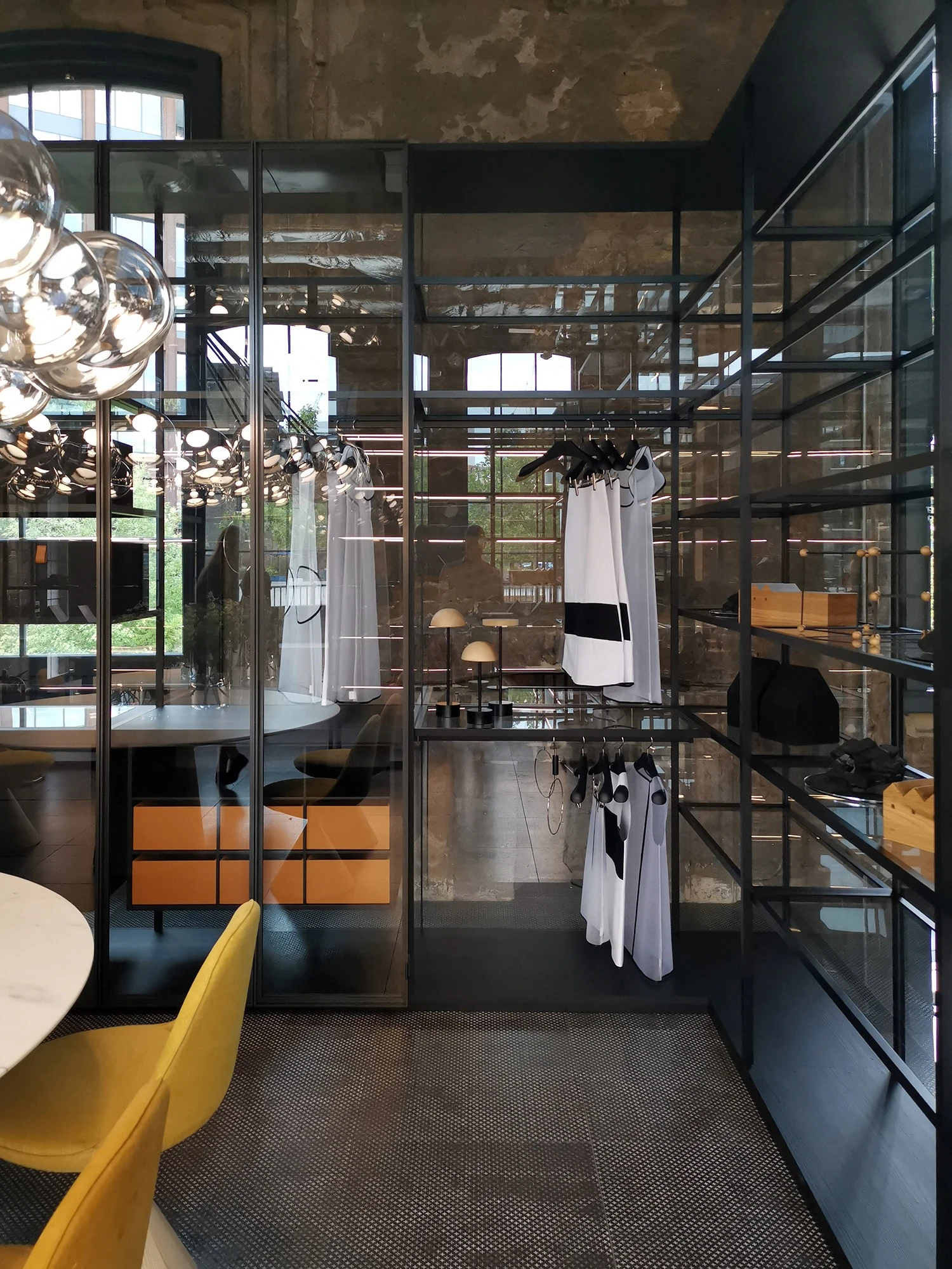 Porro’s new London point opens at Tom Dixon’s Coal Office building. The brand’s architectural systems and collections, characterized by pure geometric shapes, technological details, research on materials and finishes, blend with the expressive power of coal evoking the history of the place, ready to become a new platform for custom-made projects, to spark creativity and craftmanship at the next level.