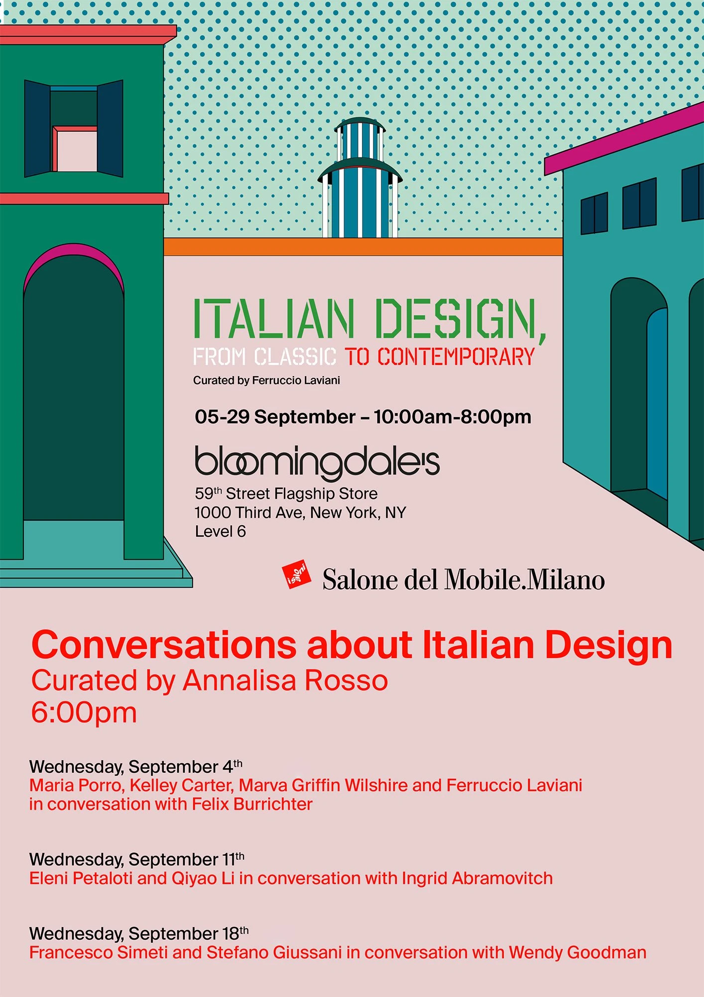 The event was inaugurated on September 4th in the presence of Fabrizio Di Michele, Italy’s Consul General in New York, with a talk that brought together President of Salone del Mobile.Milano and Marketing and Communication Director of Porro S.p.A. Maria Porro, Bloomingdale's Fashion Director Kelley Carter, curator and founder of SaloneSatellite Marva Griffin Wilshire and architect Ferruccio Laviani. The panel was moderated by Felix Burrichter, founder of PIN-UP magazine, officially launching the “Conversations about Italian design” series of engaging talks, curated by Annalisa Rosso.