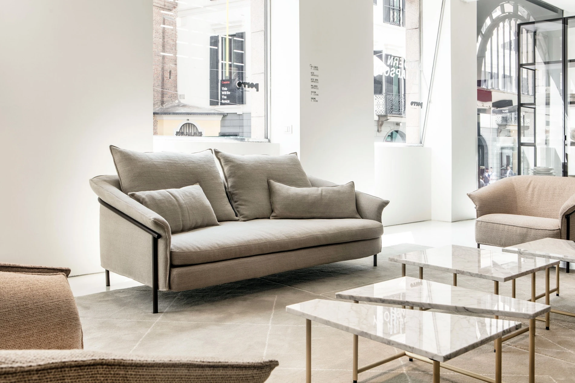 In the spaces of the Porro Duriniquindici showroom on 2 levels we find a sequence of wide open environments– from the entryway to the living area, passing through the dining room, bedroom, dressing room and home office – where the 2018 novelties parade one after the other, extending the codes of the Porro home, which can be conjugated into an infinite spectrum of nuances, playing with the combinations.