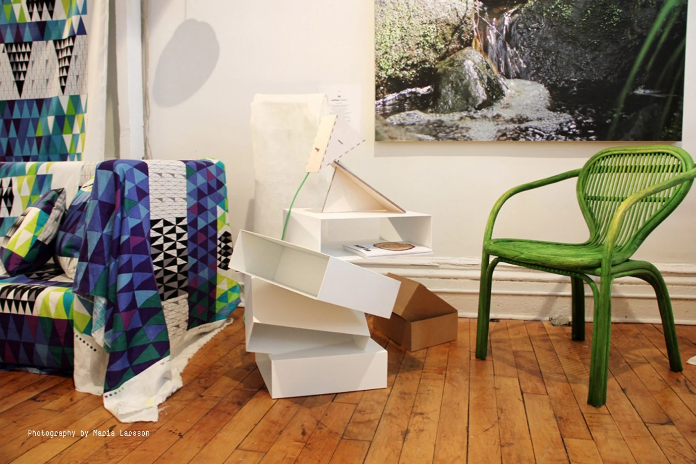 Porro enriches its experience in New York with its presence at the exhibition “Home in the woods nyc: from Swedish Modern to New Nordic”, from 17 to 22 May 2013. Balancing Boxes, the small table consisting of a series of irregularly overlapping boxes in white painted metal and in red gum wood, as though balancing in space. Gentle, the chair characterized by a sprung back rest and two-tone and two-material effect, and Sundial, a wall clock standing out for its whiteness and circular shape with the 12 hours fitted perpendicular to the top, readable through the shade traced on the white surface: a unusual solution, which frontally is changed into a parallel line composition and from the side in an amusing number superposition are the three examples of work represented by the company 'Front Design' for Porro in the exhibition entirely dedicated to Nordic architecture, art, design, fashion and food curated by the Swedish architect, designer, educator and forester Maria Larsson in her gallery space at 29 Mercer Street, in SoHo. With long interdisciplinary experience including art, branding and urban design, she has resided in New York for 7 years, where she runs her practice after 11 years in Stockholm. Her installation matches selected unique pieces that represent the Swedish Modern by architect Masters Bruno Mathsson and Sven Markelius and the New Nordic creativity: a collection of the latest products by leading designers, by progressive young Nordic furniture companies, established high-end manufacturers and independent design studios. A story that shows sustainable craftsmanship through innovative historical and contemporary creations, exploring the artistic boundary with nature as material and inspiration.