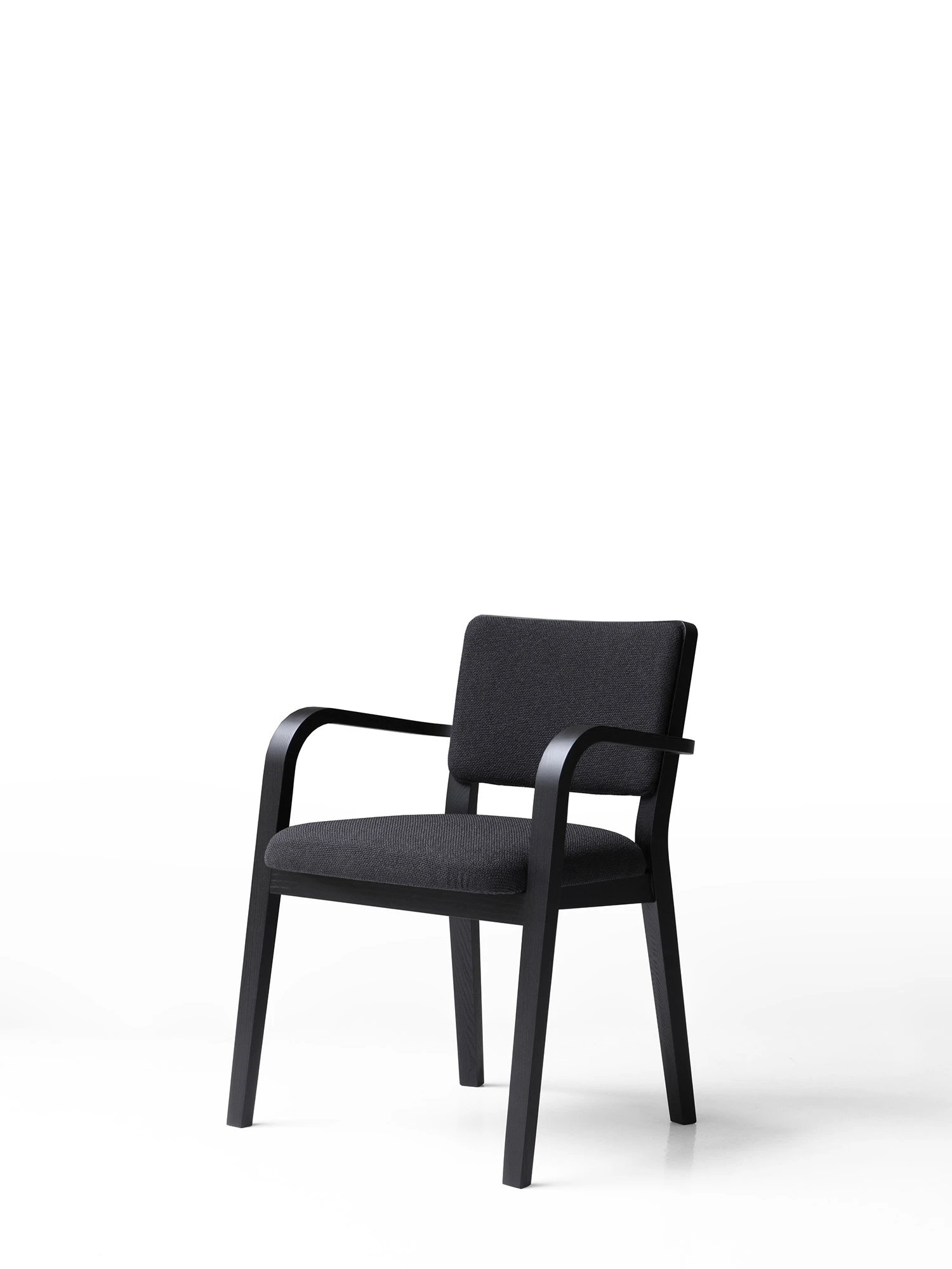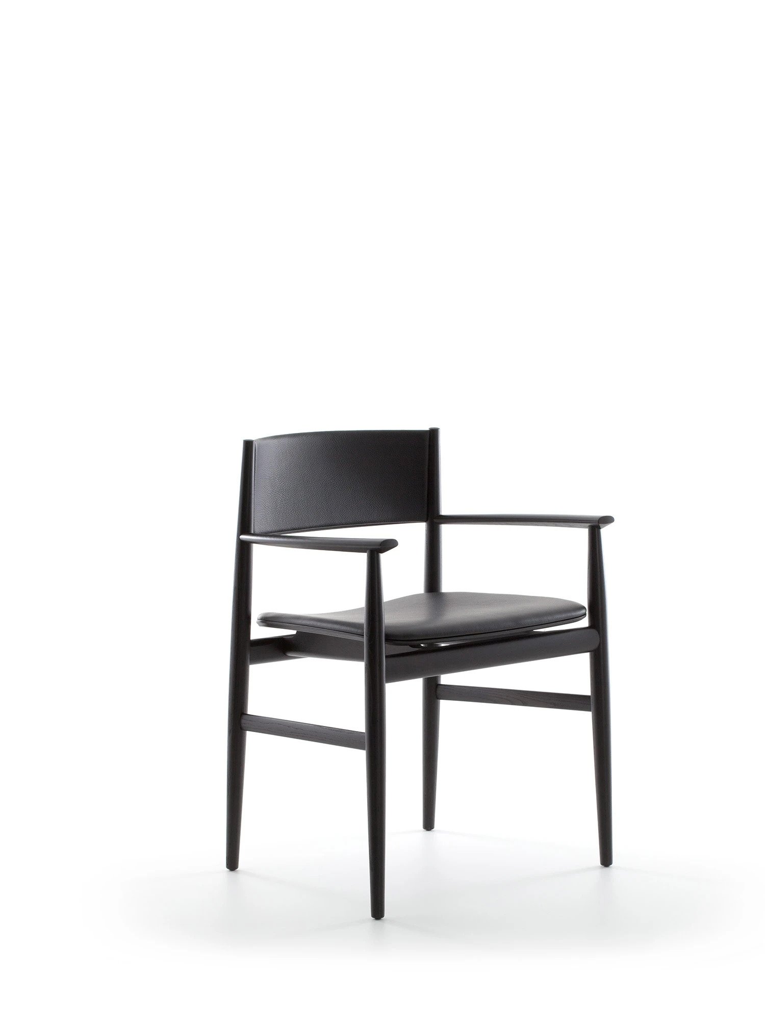 Grace and discretion characterise the new Nebbia chair, in which craftsmanship blends with industrial design. Thick solid ash wood legs give life to the finely curved armrests, offering support for the shell-shaped backrest and the seat, both upholstered. With authenticity and memory – revisited in a contemporary way – as its core values, the chair offers great comfort, convenience and new expressive possibilities for contract spaces.