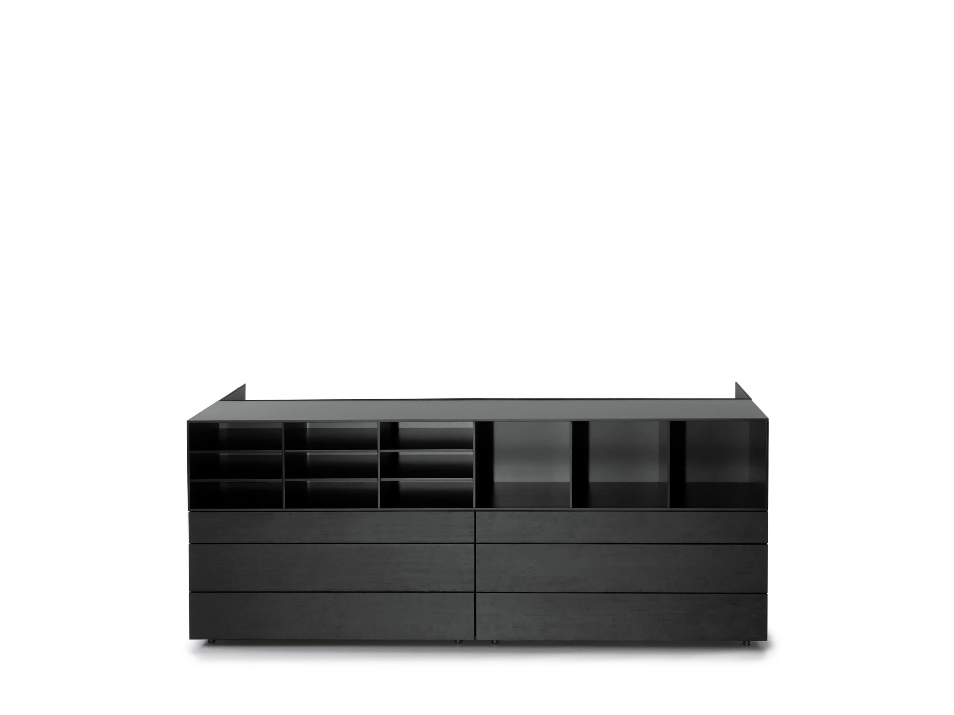 Starting from the basic element, the drawer, Hub develops in a wide system of container types ranging from nightstands to functional cabinets and fine chests of drawers to be placed in the middle of the cupboard area – available in multiple versions.