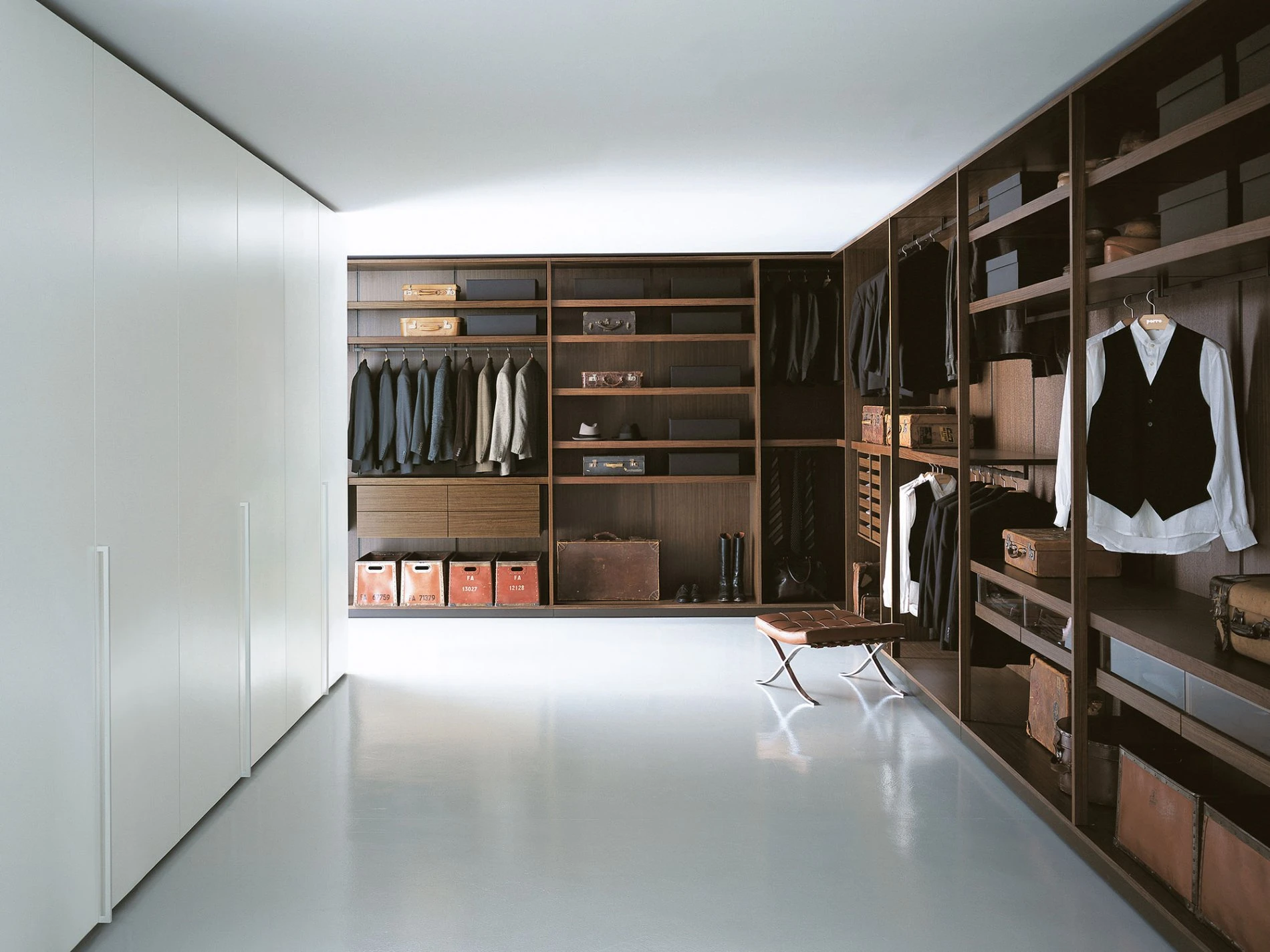 With three different structural concepts, Storage is the first modular system that allows for continuity of space throughout the wardrobe. The innovation stems from the new conception of the supporting element of the structure. Traditionally viewed and designed as a separator within wardrobes, with Storage, the side panel is no longer a barrier but becomes the element that enables the airy continuity inside the wardrobe, while still performing its function as a structural support and a base for horizontal elements. Inside the wardrobe, the concept of space takes on new meaning. Thanks to the three distinct structural types—walk-in closet, traditional wardrobe, and boiserie—that now integrate seamlessly with one another, it’s possible to create both open and closed spaces by alternating different materials for transparent and non-transparent solutions.