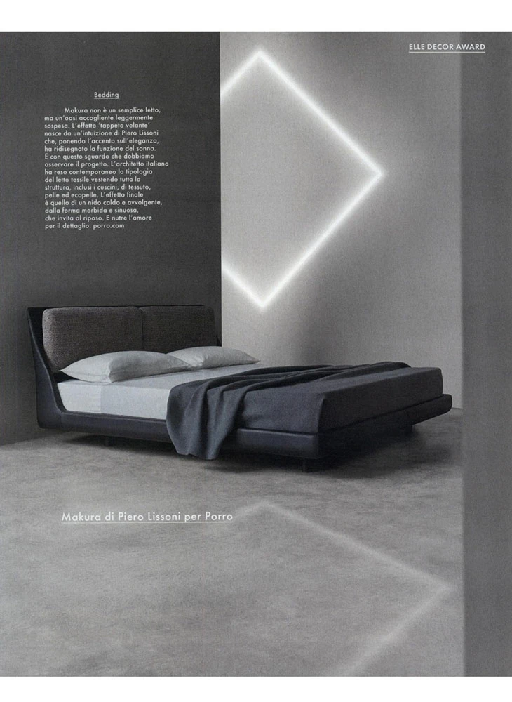During the Milan Design Week, Lorenzo and Maria Porro, Porro's President and Marketing Manager, received the EDIDA Elle Decor Award conferred to the bed Makura designed by Piero Lissoni, winner of the category Bedding. Non a simple bed, but a welcoming oasis, slightly suspended, which tells the love for the detail that's typical of this brand.