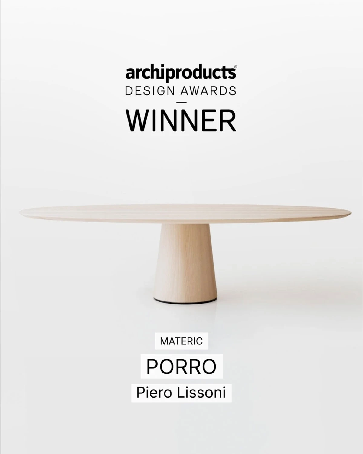 We are happy to announce that Materic Ovale table by Piero Lissoni for Porro has won the Archiproducts Design Awards 2022.