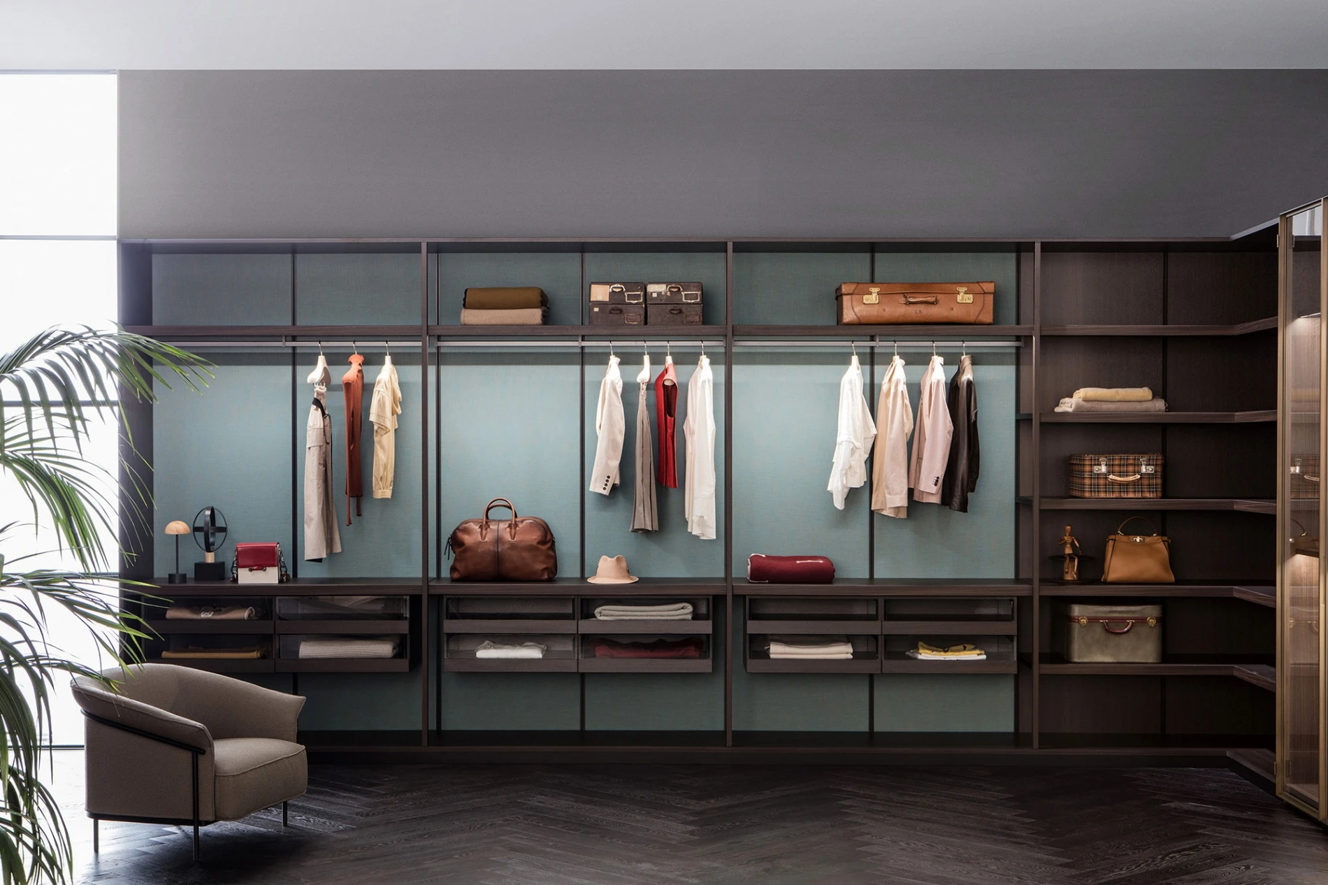 Thanks to an incredible offer of typologies and accessories, Porro wardrobes and walk-in closets can respond to the countless functional needs of private homes and the most elegant shops, giving them a warm and inviting image.