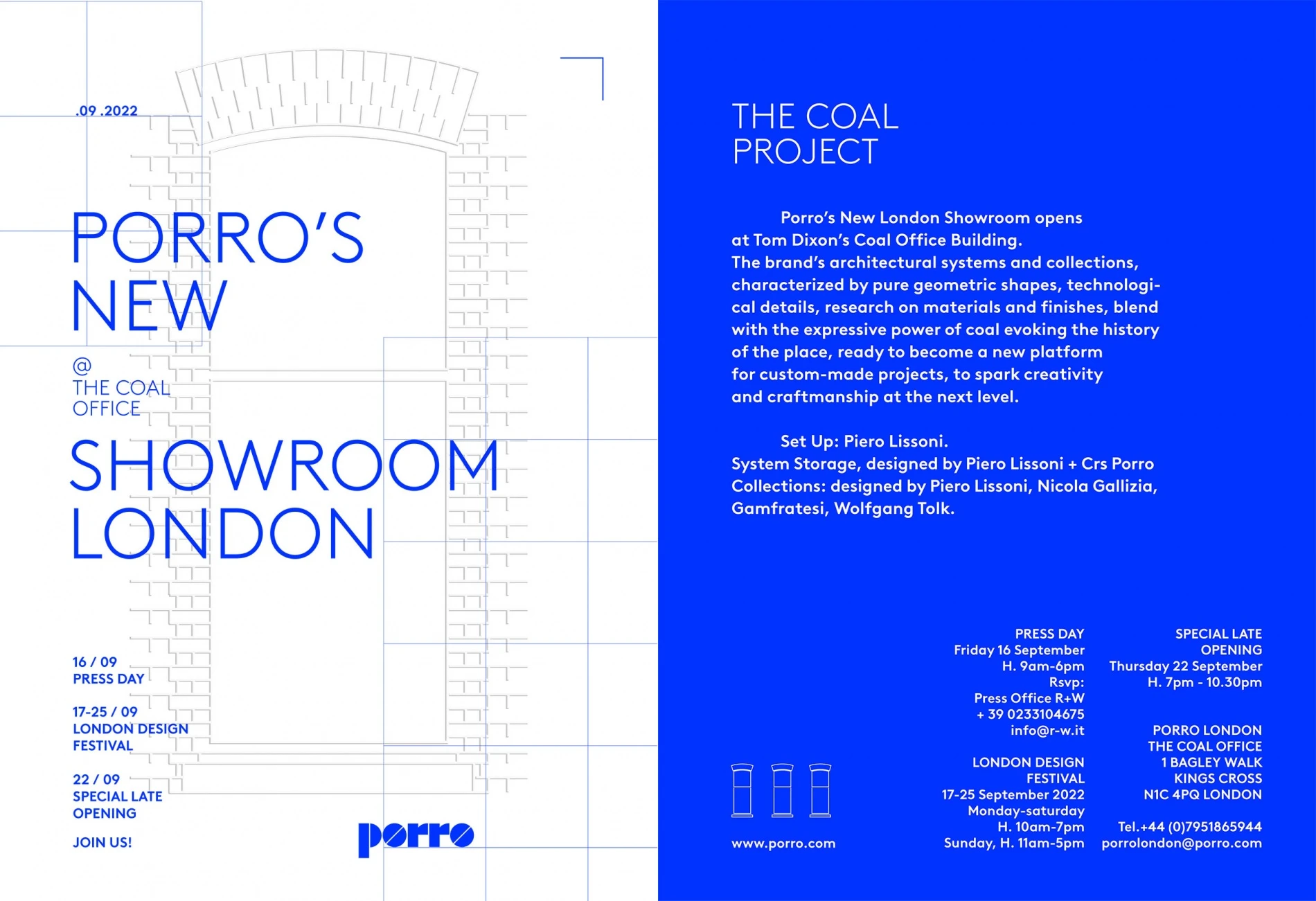 Porro’s new London showroom opens at Tom Dixon’s coal office building. The brand’s architectural systems and collections, characterized by pure geometric shapes, technological details, research on materials and finishes, blend with the expressive power of coal evoking the history of the place, ready to become a new platform for custom-made projects, to spark creativity and craftmanship at the next level.