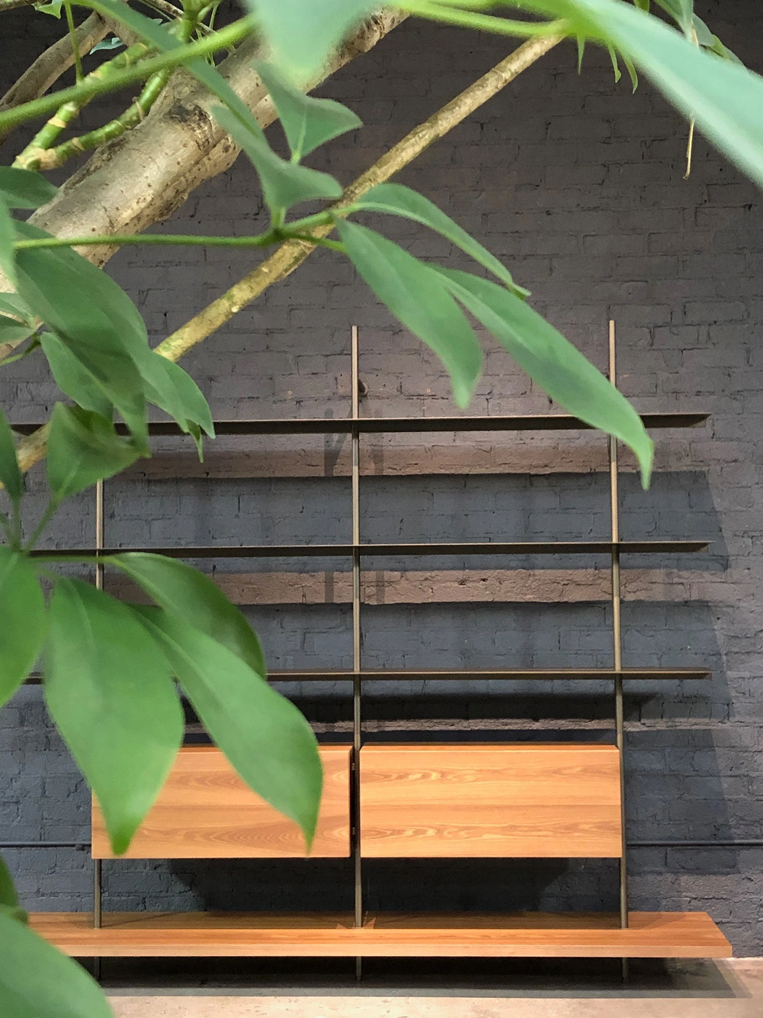 Proudly carrying the greatest Porro selection in the U.S, the current display at GRAYE features a mix of iconic and recent pieces. In the dining room, a square Metallico Table, designed by Piero Lissoni, is selected by GRAYE in a bodacious red. The Modern system of containers, designed by Piero Lissoni and Porro Research Centre, is presented in a sculptural sideboard composition raised on the new Bridge feet. Protagonist in the living area is the system of bookcases and equipped walls System, showing the precious essences of Porro ‘s selection of woods. The calibrated design of Ferro table by Piero Lissoni is declined in the low table version, h. 400 mm, with a bronze effect finish: a visual icon with a light aesthetics, perfect in the centre of a room for a sophisticated but convival atmosphere, portraying an innate elegance.