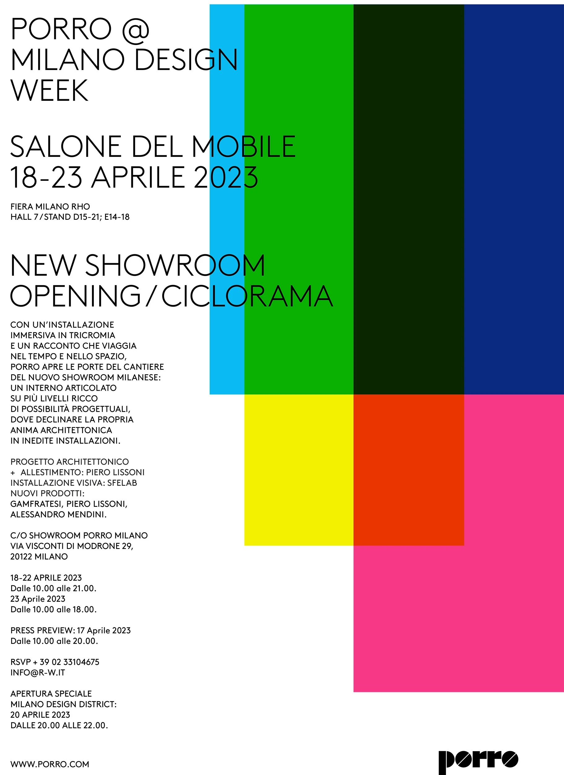 With an immersive three-color installation and a narration that travels through time and space, Porro opens the doors of the new Milanese showroom construction site: a multi-level interior full of design possibilities, where to express its architectural soul in unprecedented installations.