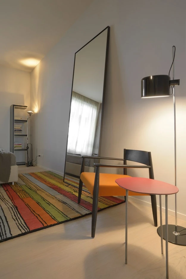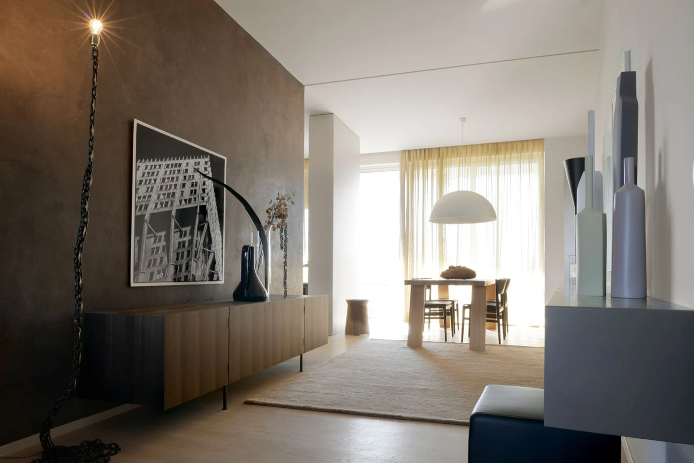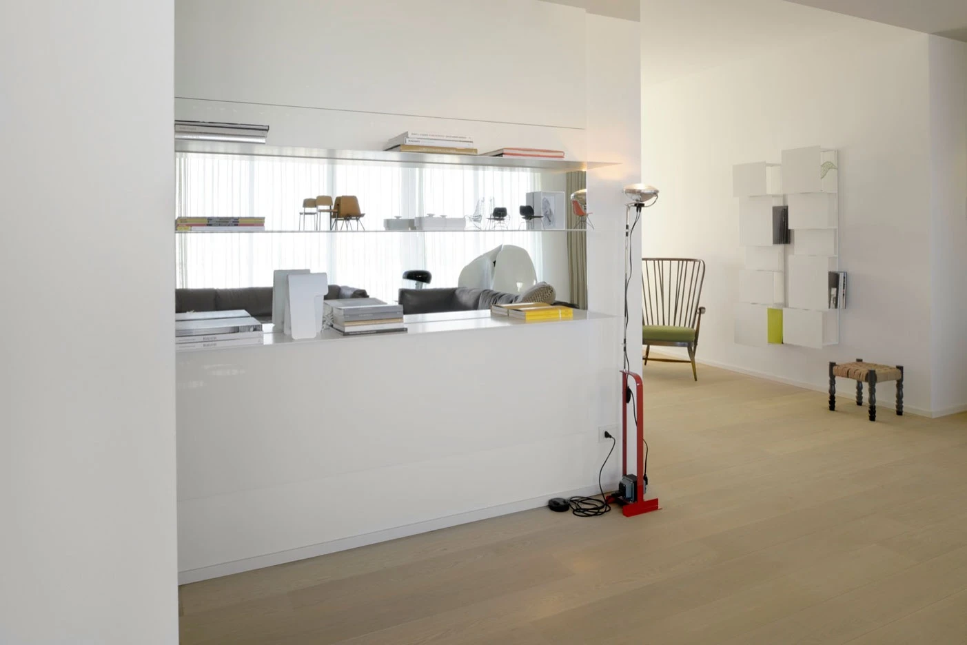 In the residences designed by Daniel Libeskind, however, the interior designer Bruno Tarsia choose the minimal forms and precious materials of the Minimo table, Neve chairs, Sidewall bookcases, Modern raster hanging unit, Reflection mirror, Ghiaccio armchairs, Tiller sideboard, among the better known products of the Porro catalogue.