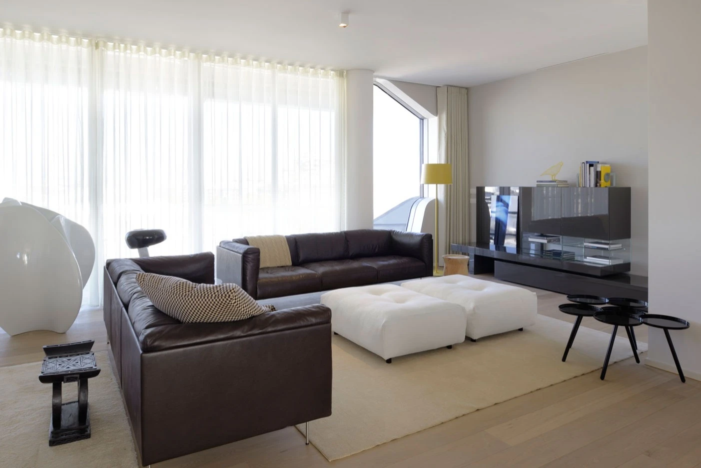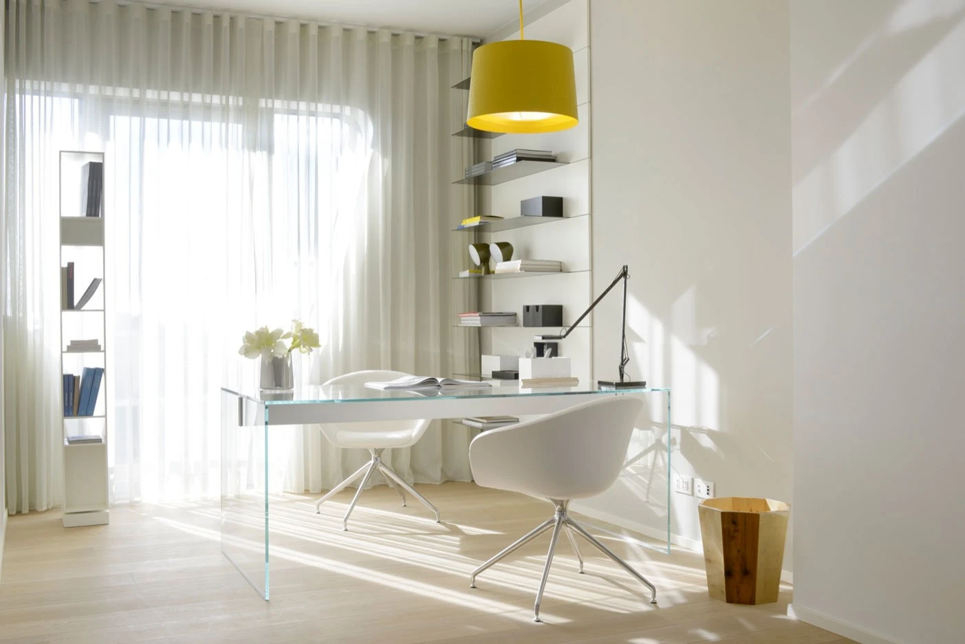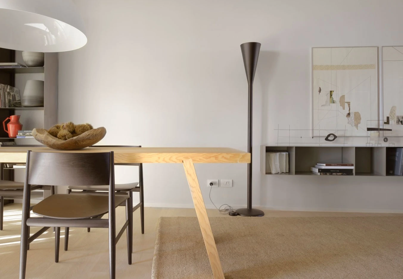 In the residences designed by Daniel Libeskind, however, the interior designer Bruno Tarsia choose the minimal forms and precious materials of the Minimo table, Neve chairs, Sidewall bookcases, Modern raster hanging unit, Reflection mirror, Ghiaccio armchairs, Tiller sideboard, among the better known products of the Porro catalogue.