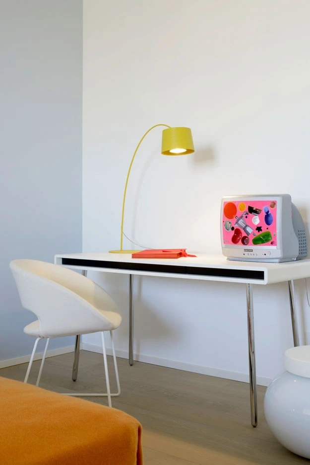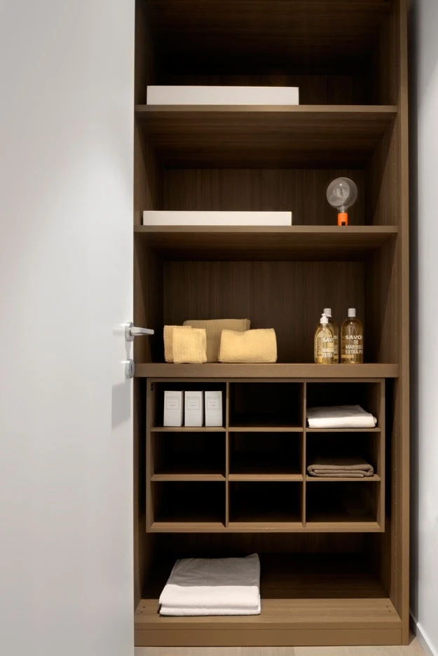 In the Residences designed by the British architect Zaha Hadid whose interiors are by the Studio Bello Dias, one can find the Load-It bookcase, the Modern anthracite container for the living room, the Storage wardrobe with sliding doors, the Web writing desk in mongoi, the Conch white chair, two Sidewall vertical bookcases, two Storage walk-in closets in mongoi, a Storage open wardrobe and a Storage wardrobe with hinged doors, mix of geometry and functionality.