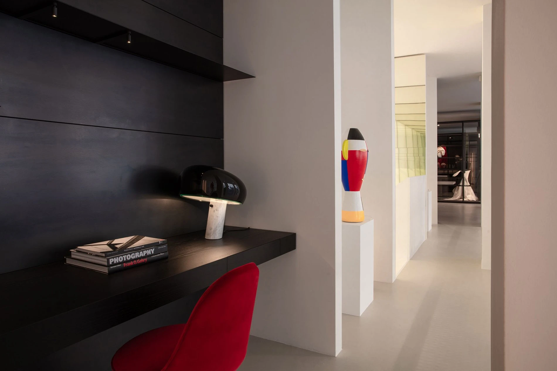 "Even for the objects that populate the space, we decided to work with unique pieces in harmony with Porro design and reflecting the philosophy of our company, on the one hand the concept of research and on the other the purity of form, establishing collaborations with exquisitely Milanese realities, but not only.
