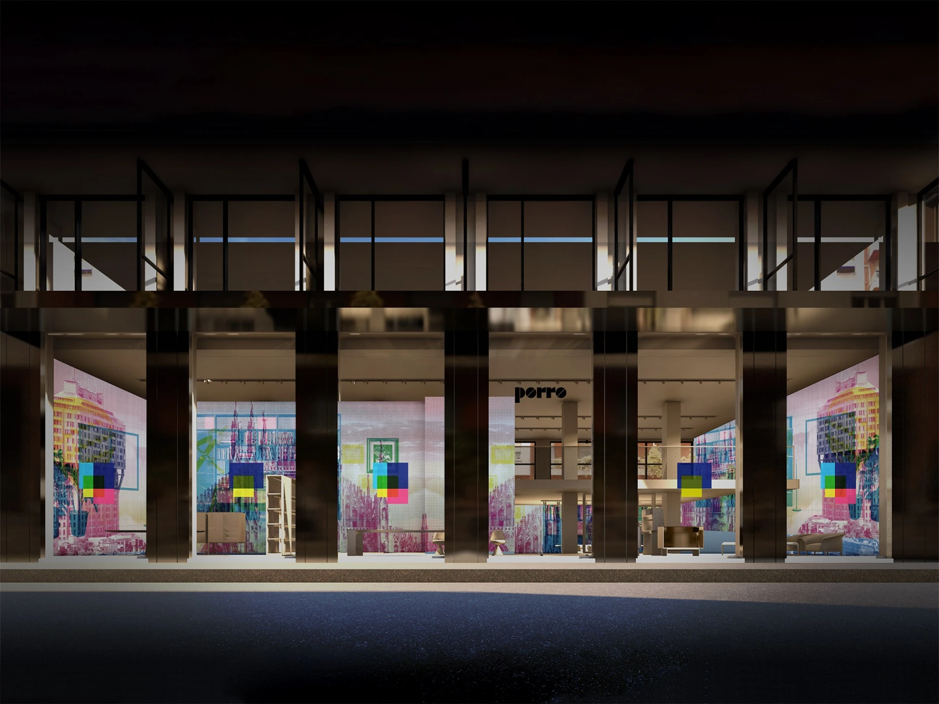 In 2023, Porro disrupts established habits and changes "home": the 20-year stay in the Milan showroom at Via Durini 15 comes to an end, and the brand moves to a new space with double visibility on the central Via Visconti di Modrone and the pedestrian Via Ronchetti, a brick, glass and metal building covered in ivy with a hidden glimpse of old Milan.