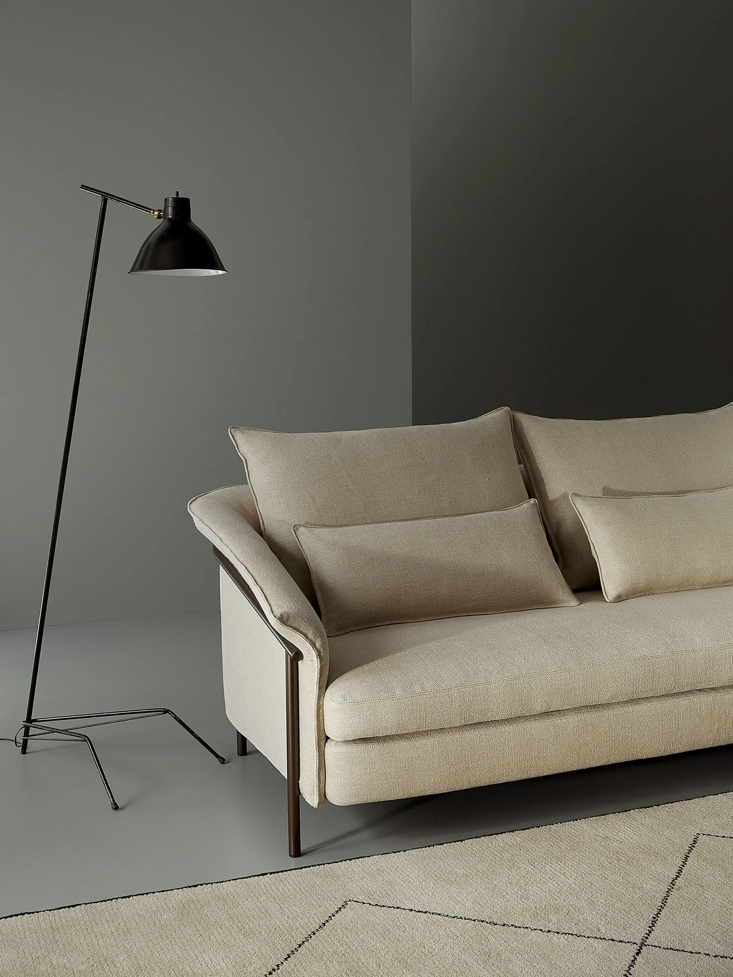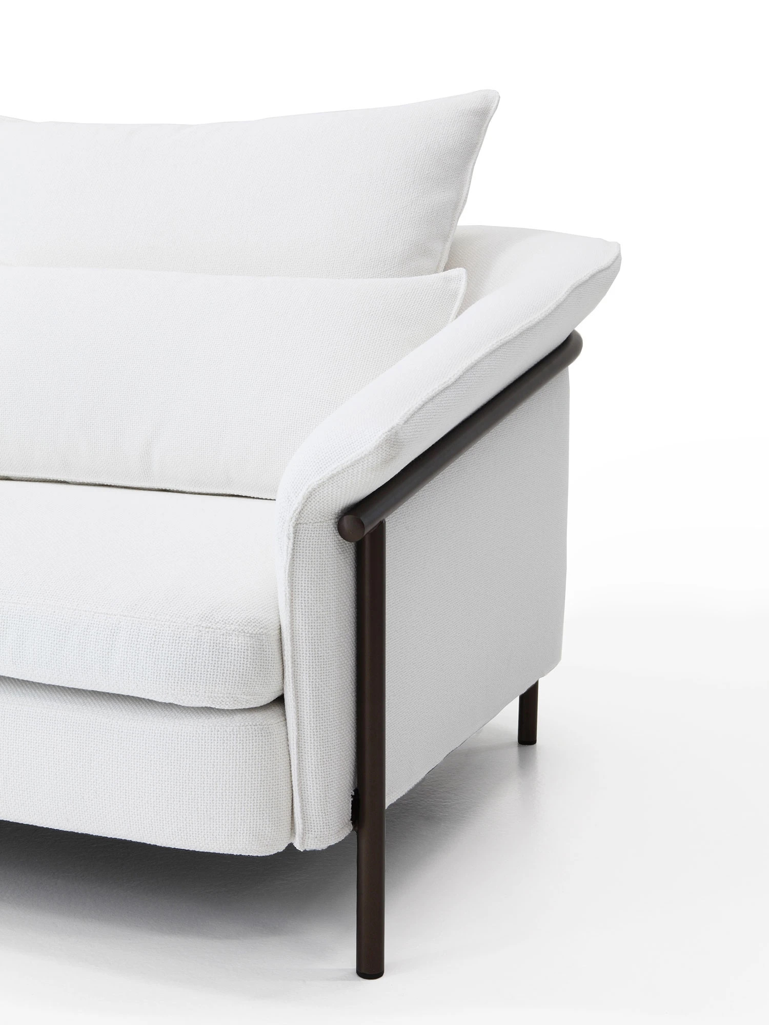 A natural evolution of the eponymous armchair, Kite Sofa is fit for a living space with its plastic shape resembling a seashell. With its compact outline, Kite Sofa unveils its refined details to a keen eye: balanced thicknesses, accurate proportions and the elegant curve of the tubular structure that encircles its internal padding.