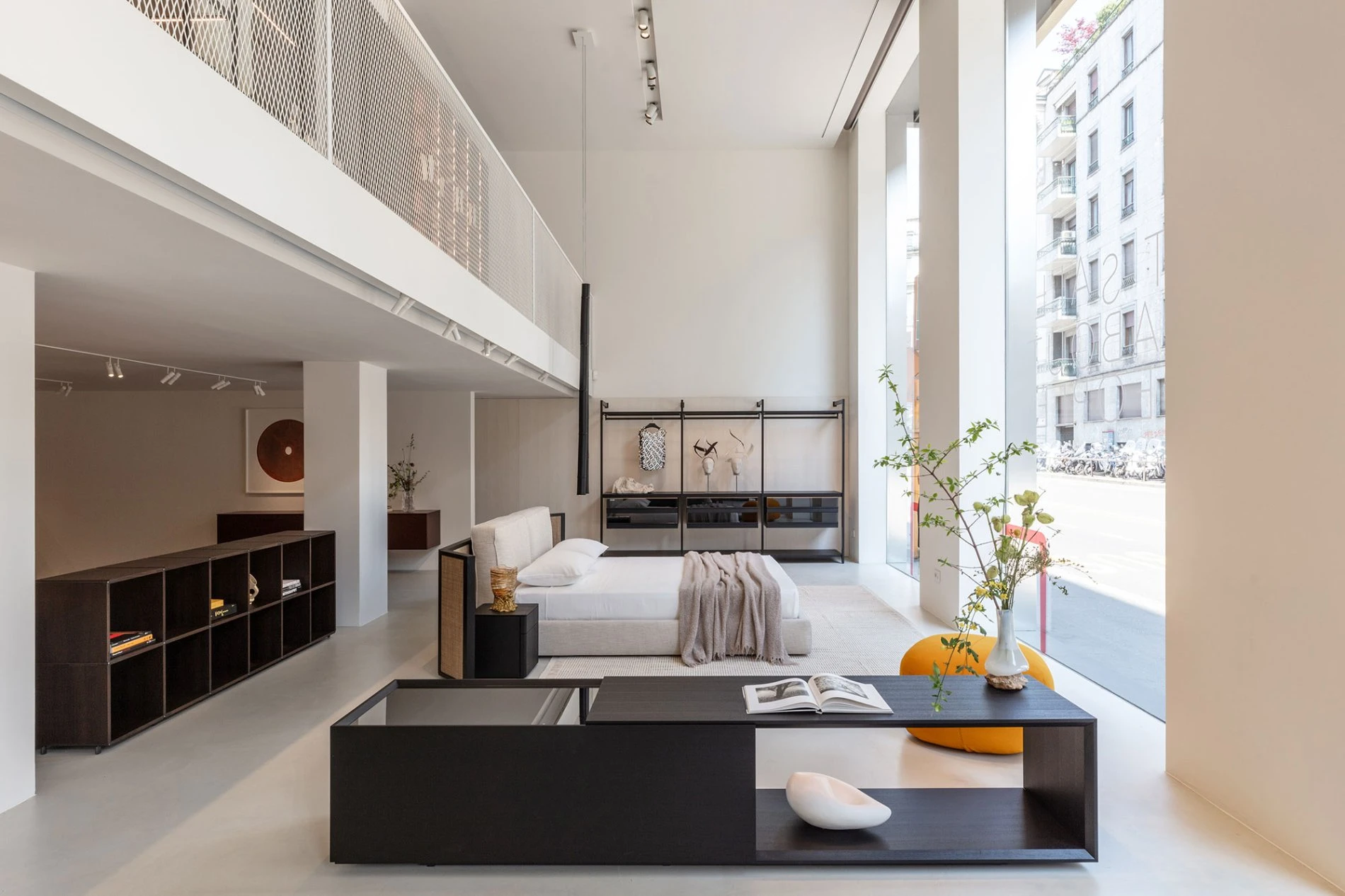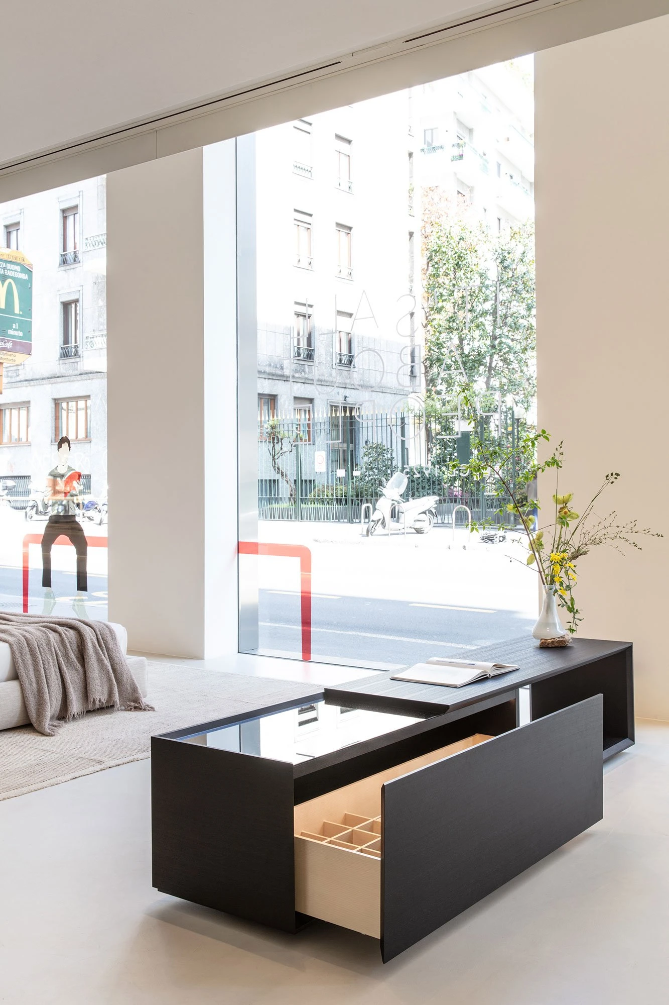We also allowed ourselves to think that Porro’s furnishing solutions are not merely and purely aesthetic, but rather the translation of research into contemporary domestic living. Therefore, when designing this object, we wanted to give it great flexibility in terms of placement, so that it could be positioned in a more conventional way – against a wall – or, like here, gain value when placed at the centre of a space”.