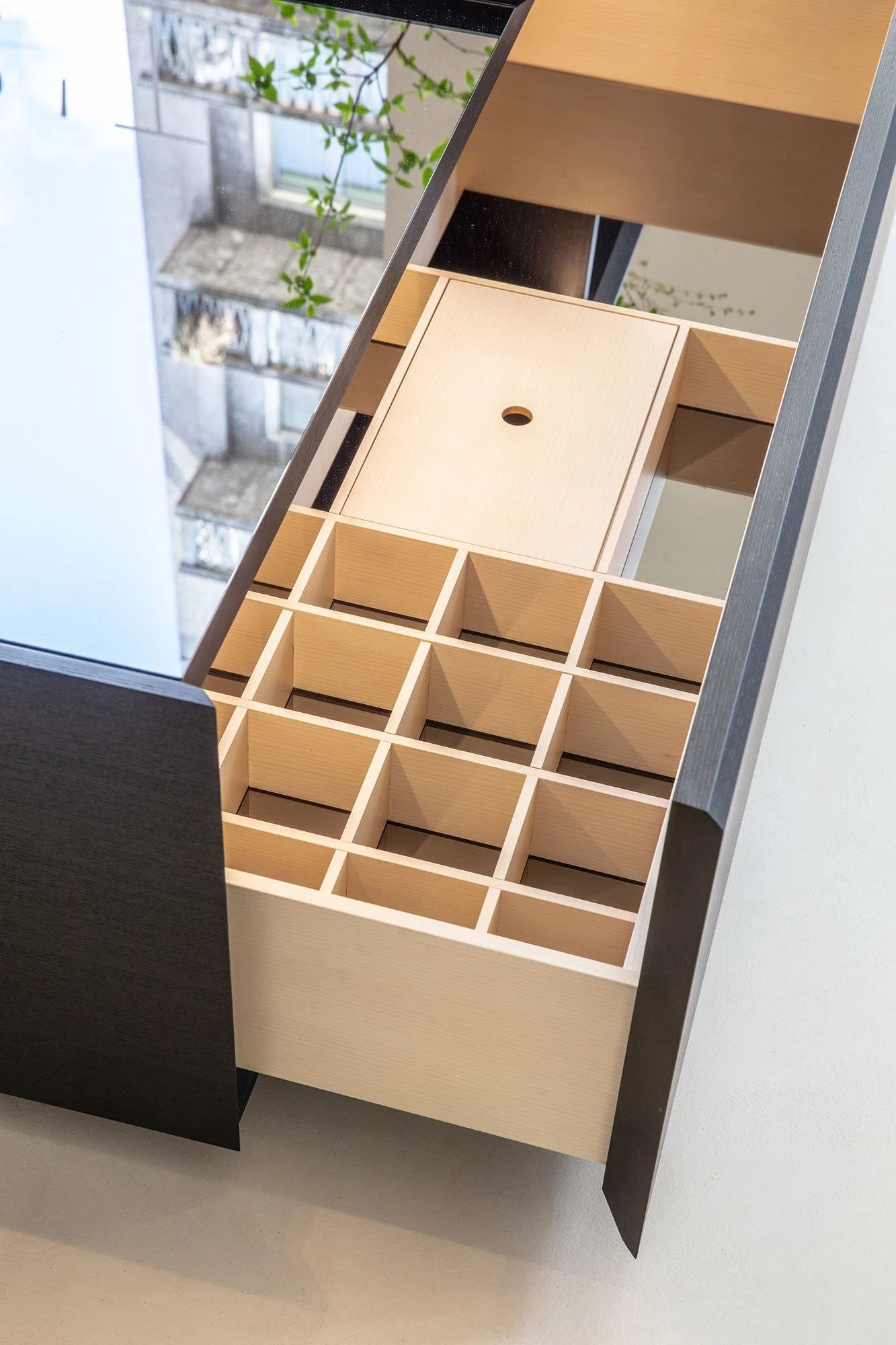 A sculpted form with an architectural concept: the new Twin sideboard by Dordoni Studio draws inspiration from constructivist geometry. Its aesthetic purity stems from the intersection and interconnection of two distinct yet harmoniously connected volumes, creating ever-changing perspectives, further enhanced by the mirror. A minimalist statement blending abstraction and tactile expression, enhanced by the material elegance of its surfaces and meticulous attention to detail, such as the 45° joints that emphasize its precise, formal character. Porro once again proves itself as a master of combining design and craftsmanship, working with a tailor-made approach and tackling structural challenges in a perfect balance between form and function.