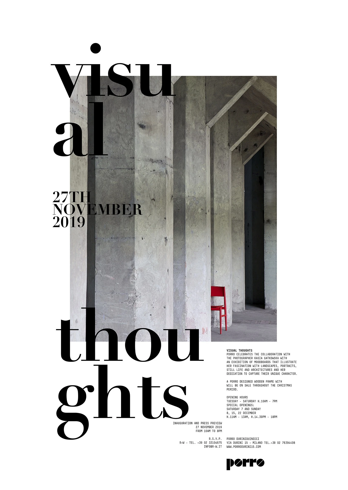 From 27 November 2019 to 31 January 2020 Porro celebrates Kasia Gatkowska – the photographer who for more than seven years has been shooting its advertising campaigns and catalogue images – with the exhibition “Visual Thoughts” hosted in Porro’s showroom in Via Durini 15, Milan.