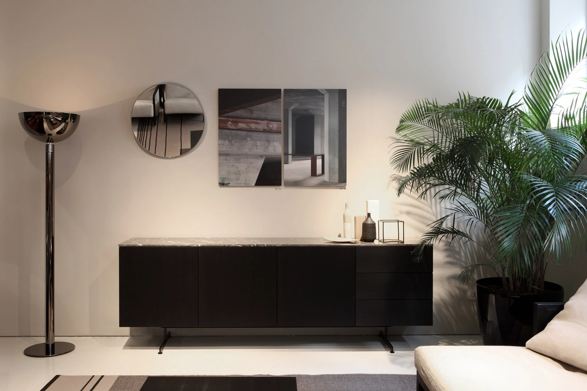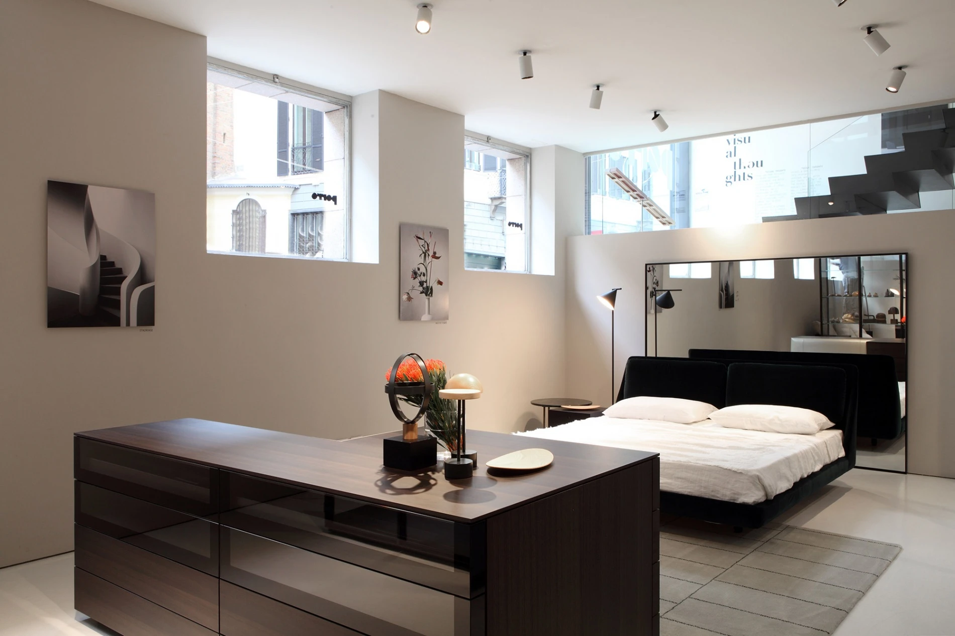Sophisticated chiaroscuro pictures, capable of leaving an indelible mark on the visual memory of the viewers, just like the Porro design that surrounds them: lightweight presences, that behind the architectural purity and the apparent simplicity reveal, by a closer look, an impassioned research on materials and proportions and the utmost care for every smallest detail.