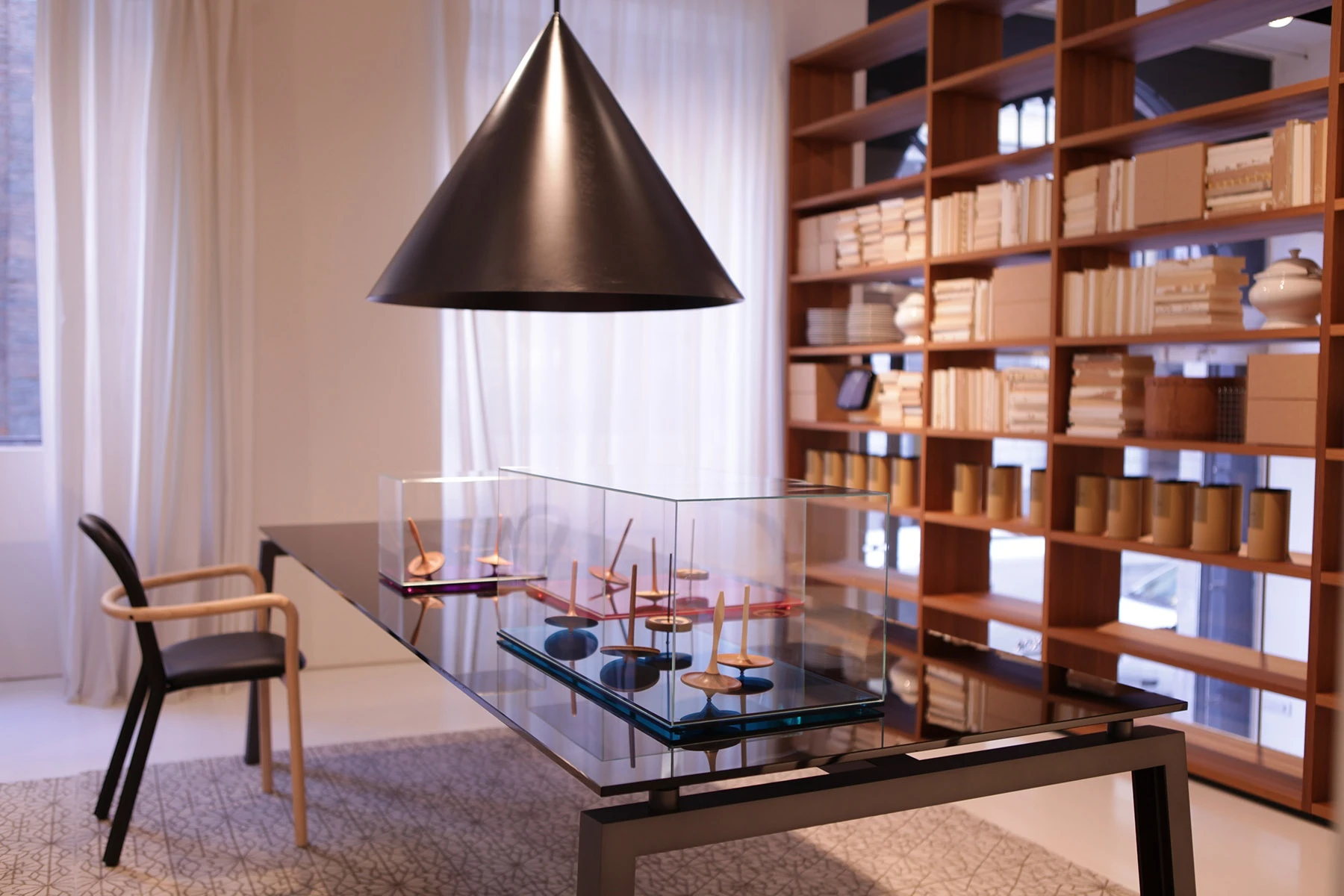 On 10 December Porro celebrated Christmas at its showroom in Milan, via Durini 15 and simultaneously started the celebrations for its 90th birthday, which will go on throughout 2015, with a collection of wooden spinning tops designed by Piero Lissoni.