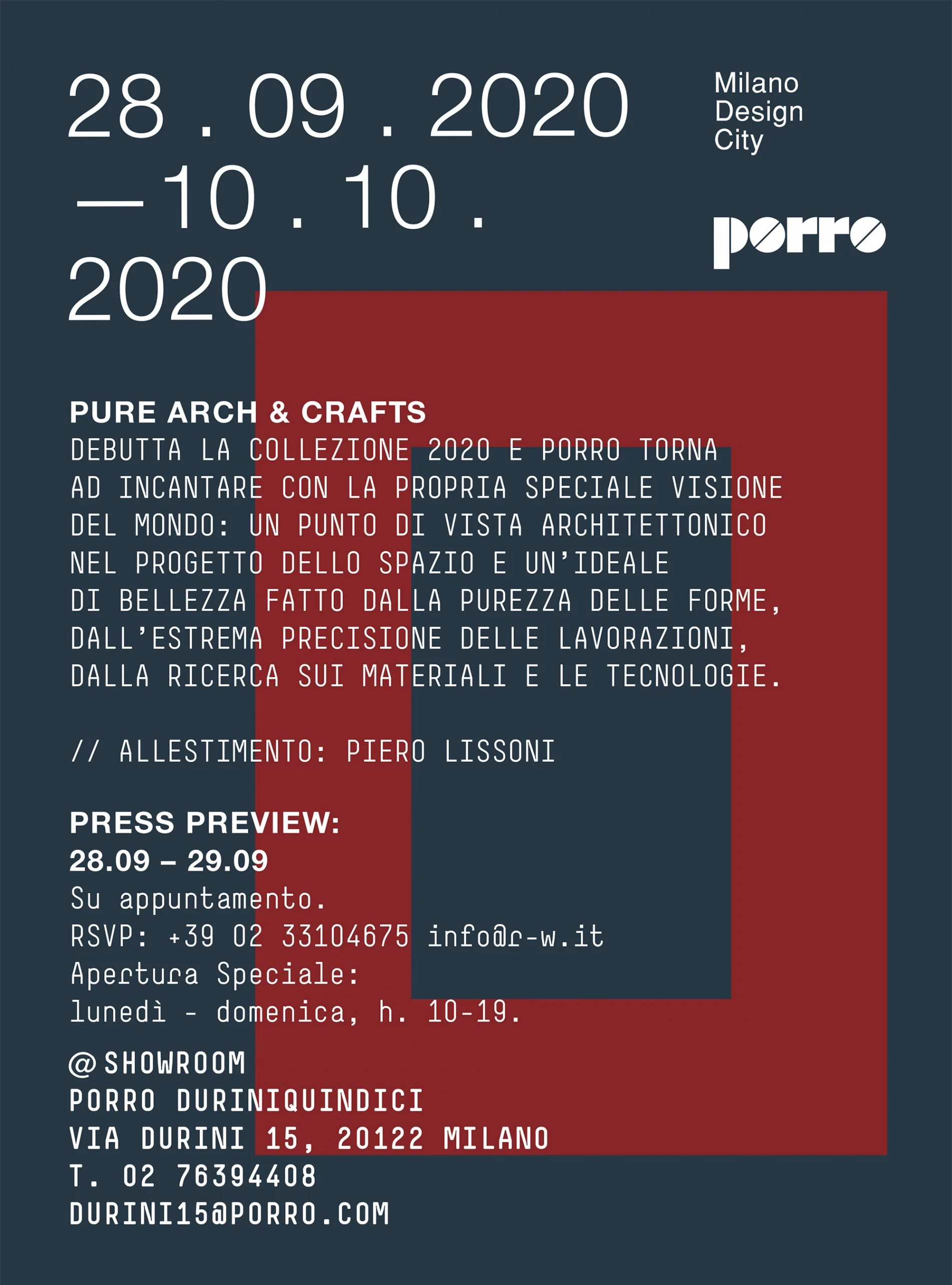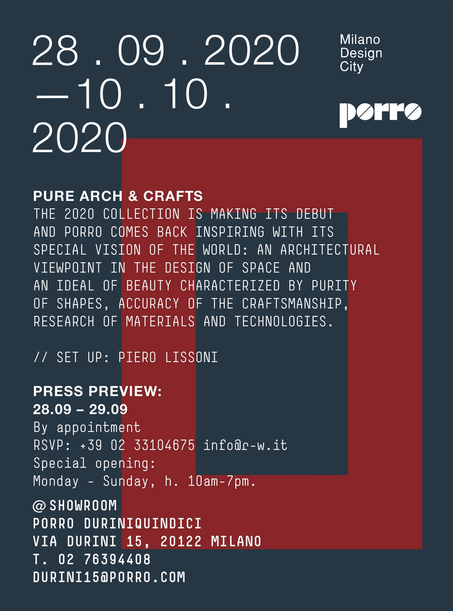 The 2020 collection is making its debut and Porro comes back inspiring with its special vision of the world: an architectural viewpoint in the design of space and an ideal of beauty characterized by purity of shapes, accuracy of the craftsmanship, research of materials and technologies.