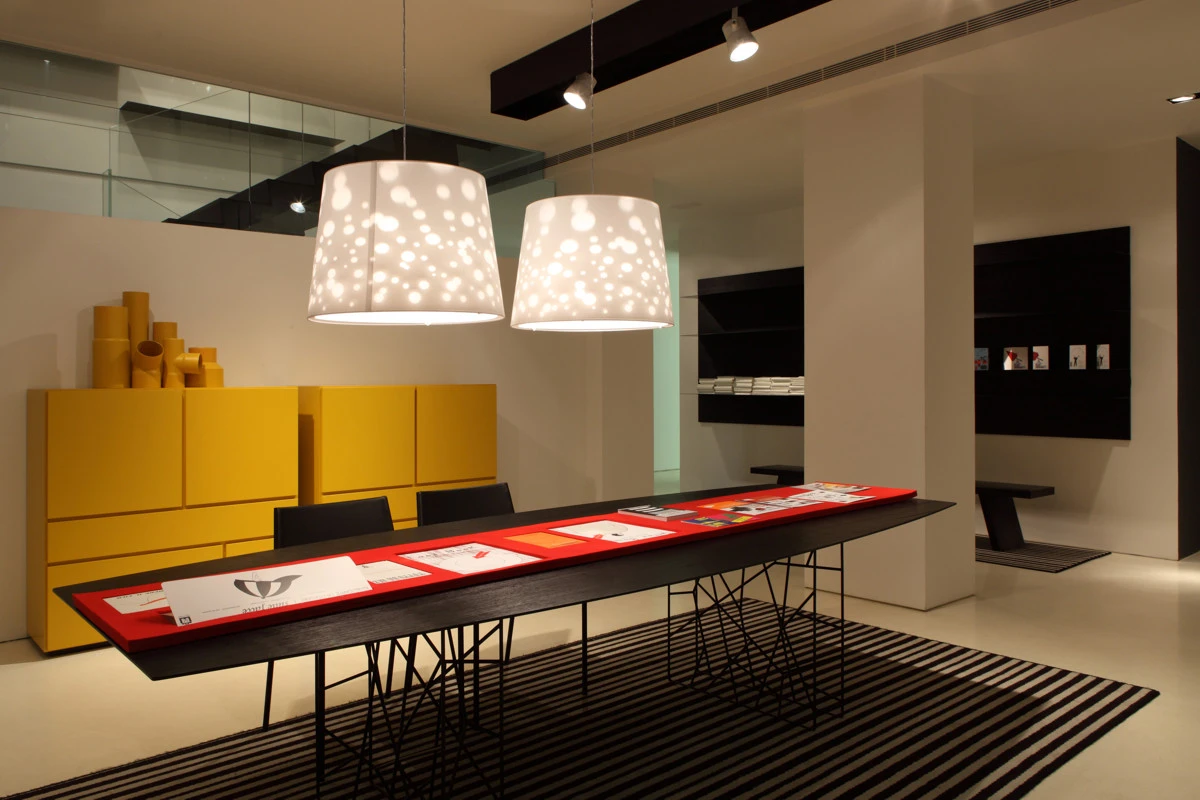 Similarities then shared by Porro and Corraini, loving to make, shape and change new shapes and "crossover" objects, to be read at different levels, without leaving simplicity apart: and then the idea that a furnishing company hosts the editing company for Christmas, matching clean and minimal design of its Milan showroom with the light Corraini images and illustrations.