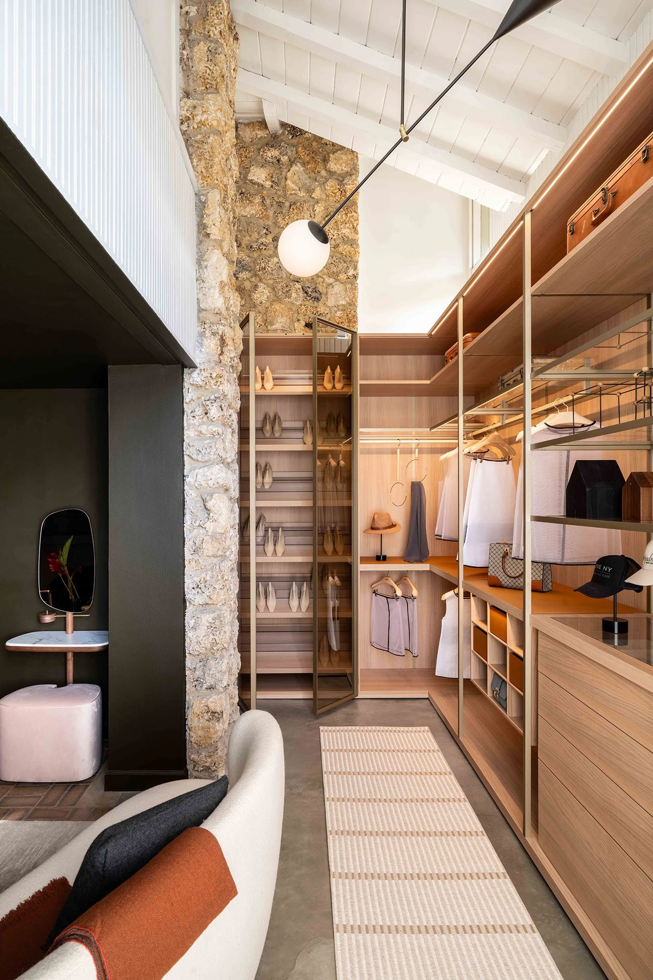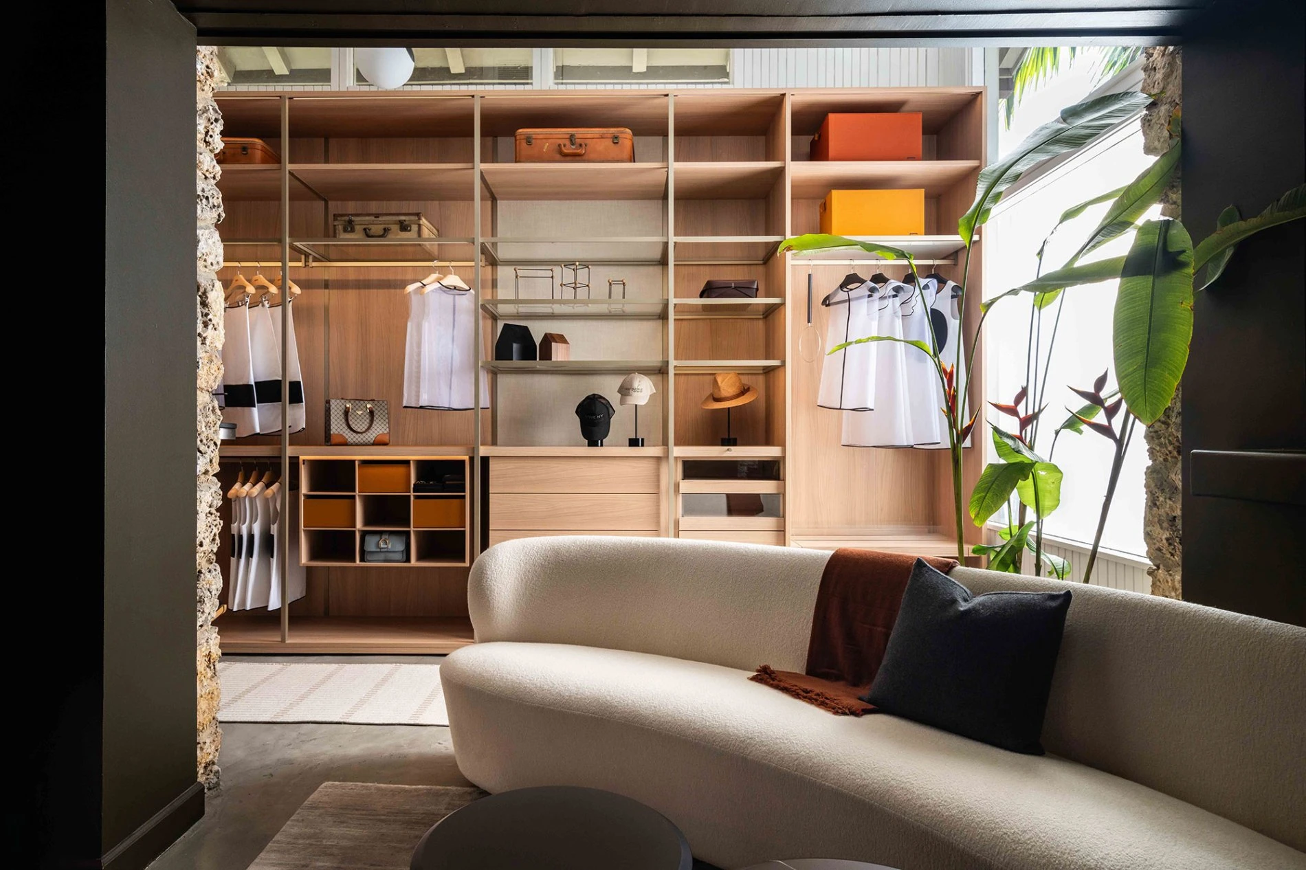 The primary suite lounge features a key element: the Storage dressing room, a dream escape for fashion enthusiasts. Each Porro closet composition is uniquely structured to fit the clients’ space and needs, offering endless versatility.