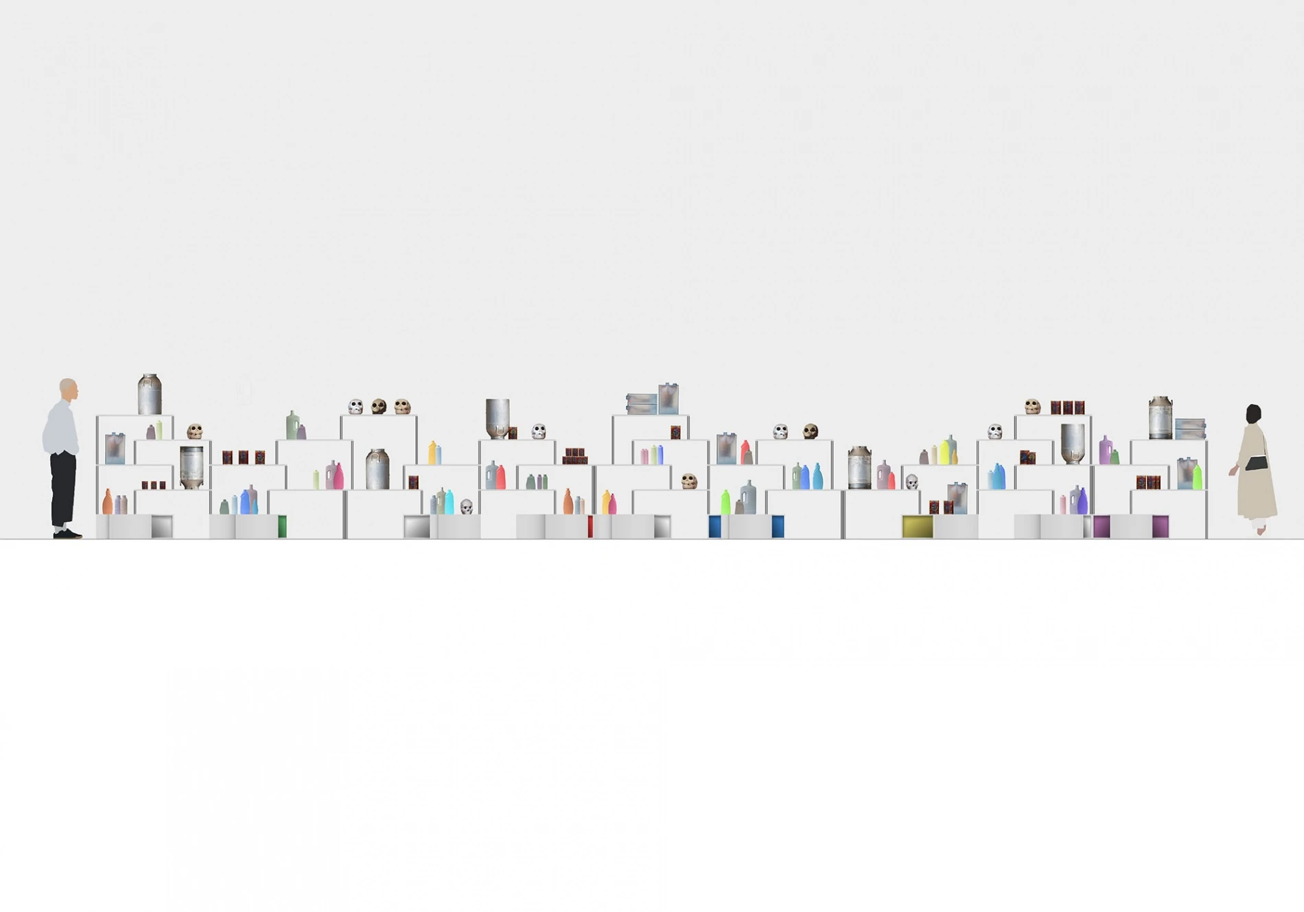 Pure geometric shapes are dressed in color in the installation curated by the designer within the Interni Design Re-Generation exhibition and realized by Porro: a large 14-meter long bookcase that becomes an abstract landscape where matter is the mental space to carry on a reflection on the world.