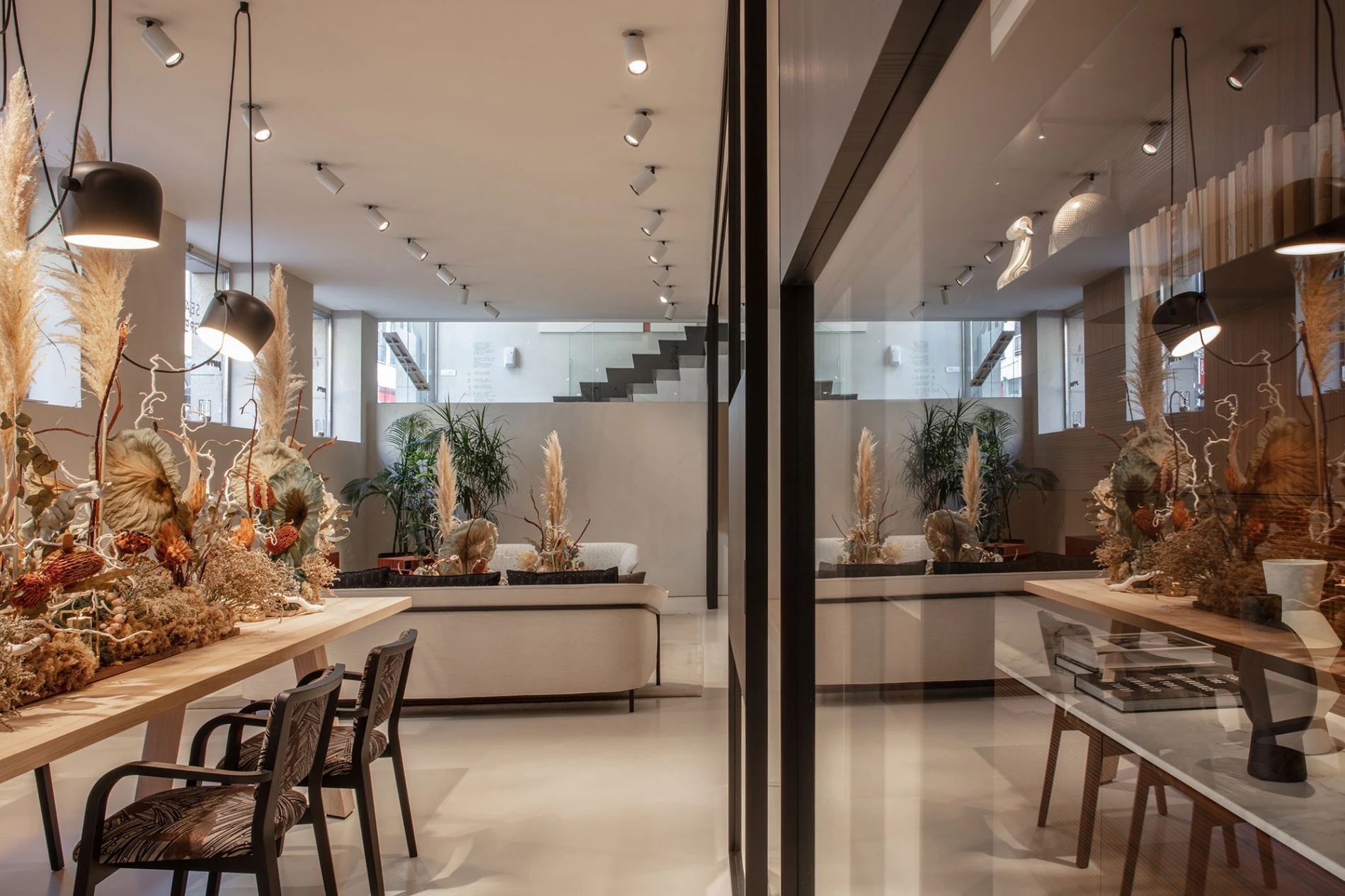 For the Christmas period, the Porro Duriniquindici showroom is transformed and the pure forms of the Porro systems and collections welcome the fabrics of the Japonaise collection by Backhausen, the delicate Ambientec atmosphere lamps and the green creations of the plant artist Satoshi Kawamoto, for unexpected interiors, in the sign of a new harmony.