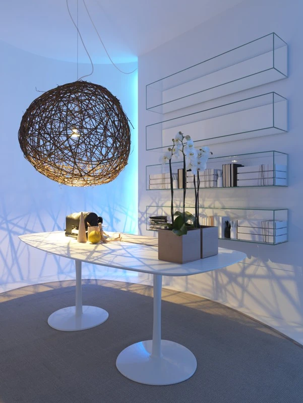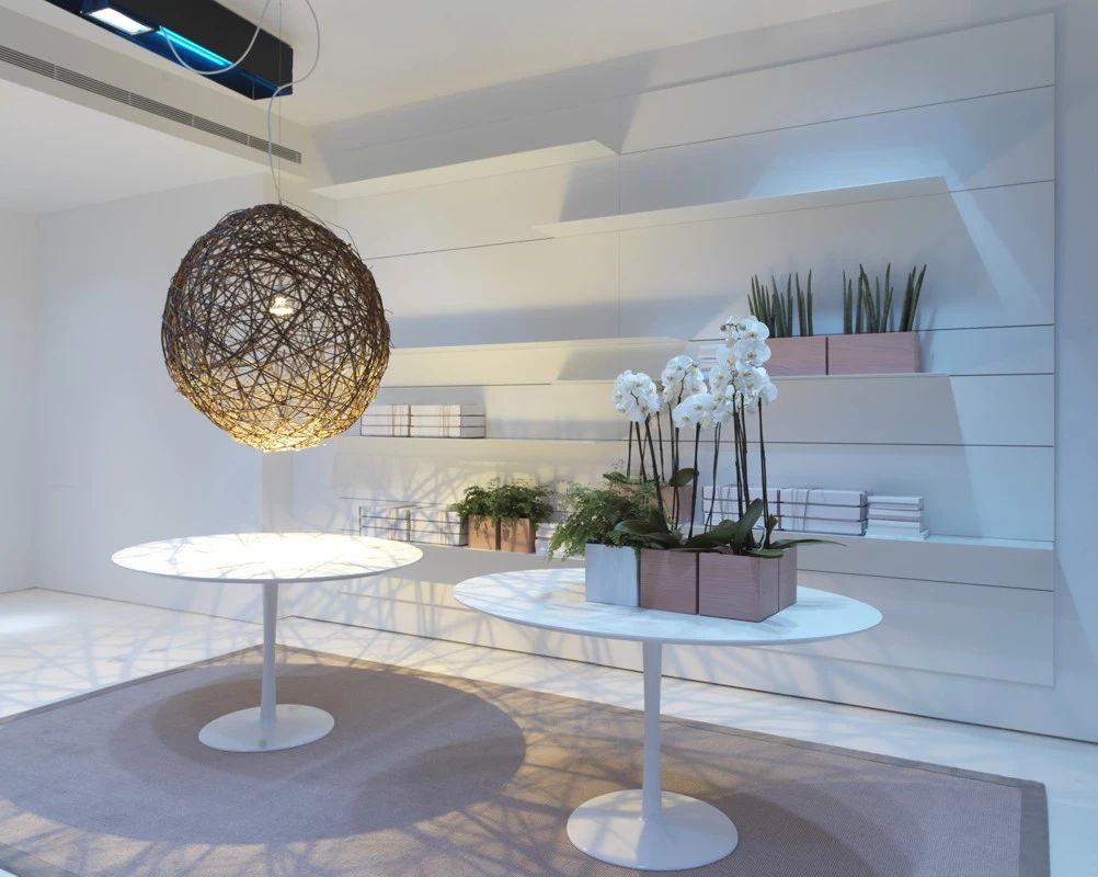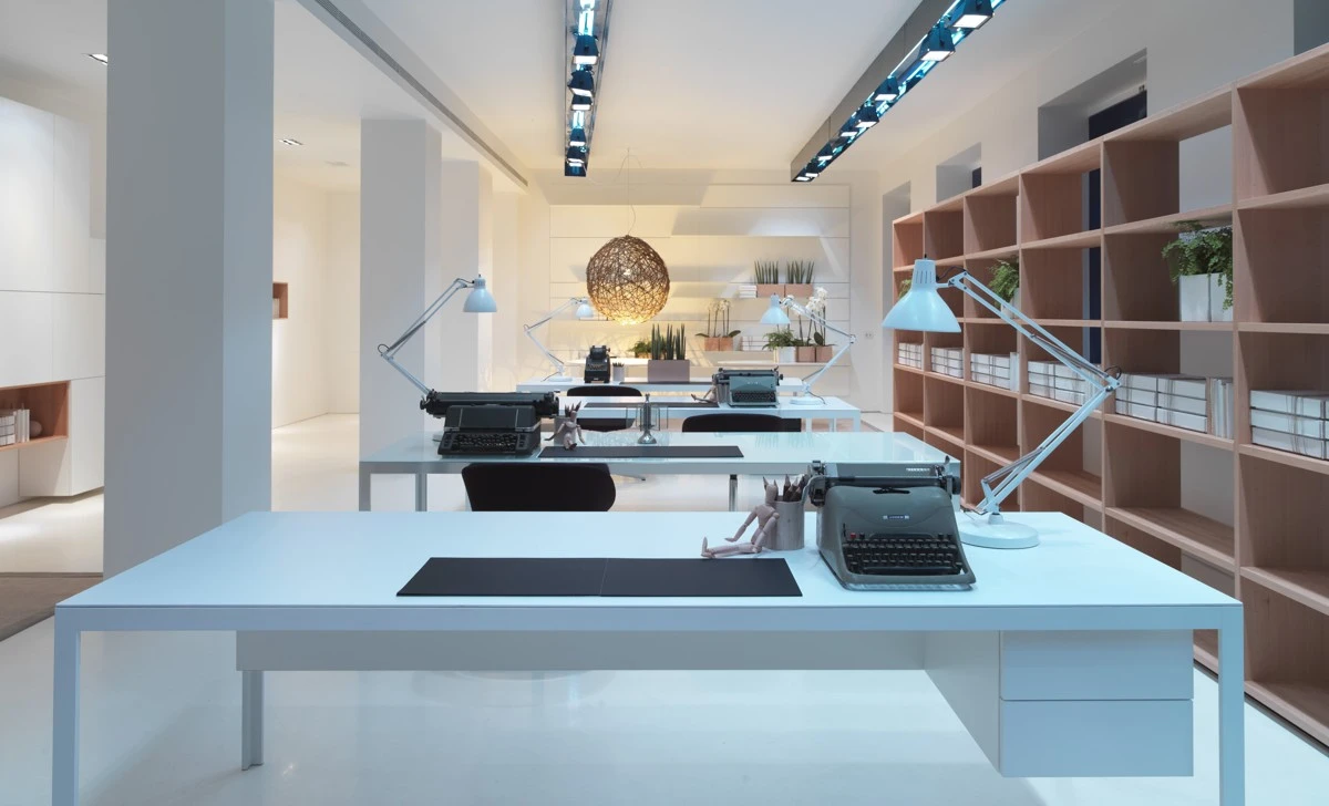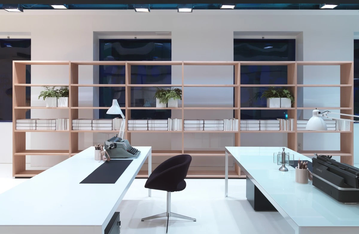 Soft technology and high aesthetic appeal also characterise the Porro home-office solutions, staged in the spaces of the showroom in Via Durini right in the centre of Milan.