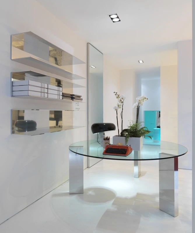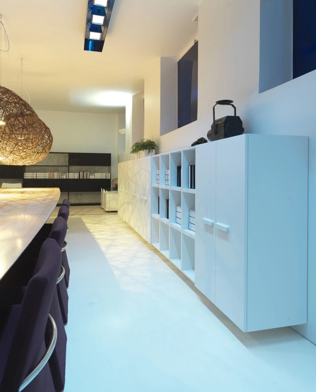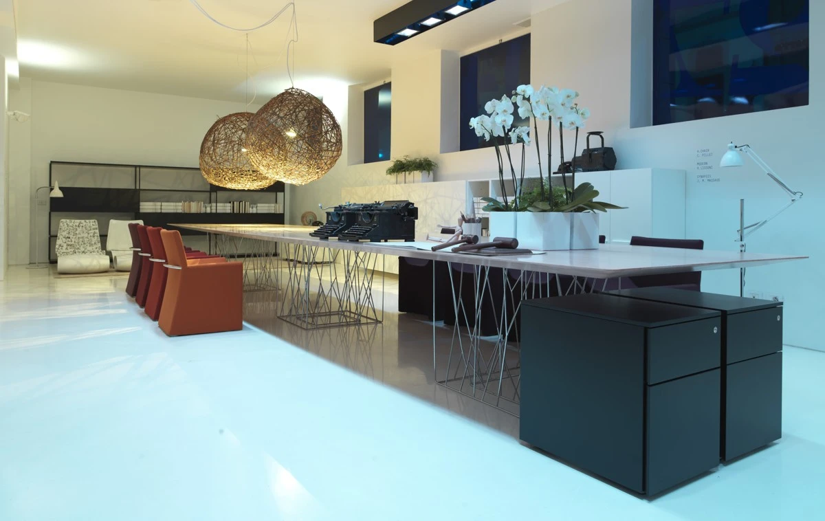 For 2009, the project research of the brand is pushed towards operational and executive spaces that are more personal and eclectic, an elegant and refined blend of atmospheres where high-tech accents, Art Déco mannerisms and a return to the more marked consistence of solid wood coexist in equilibrium, to satisfy the tastes of a curious client base that loves to mix and match, even in the working environment.