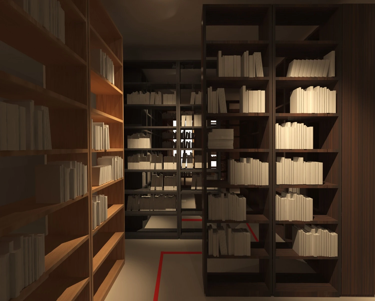 Porro’s savoir-faire on wood filters through in a conceptual manner in the “Woodenland” installation by Piero Lissoni in the Porro duriniquindici showroom: a path-itinerary where the regular grid of the System bookcase is transformed into a natural labyrinth engaged in the discovery of diverse essences and manufacturing techniques. A file rouge will accompany the visitor, helping to orient him- or herself through the finishes.