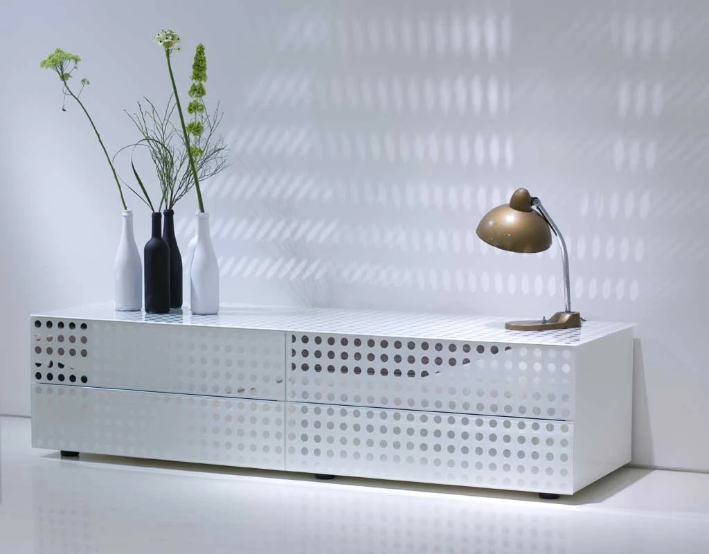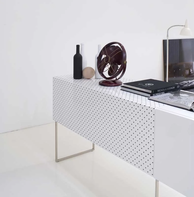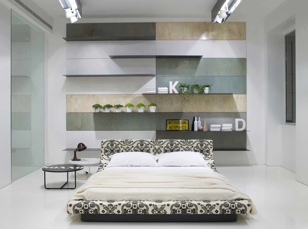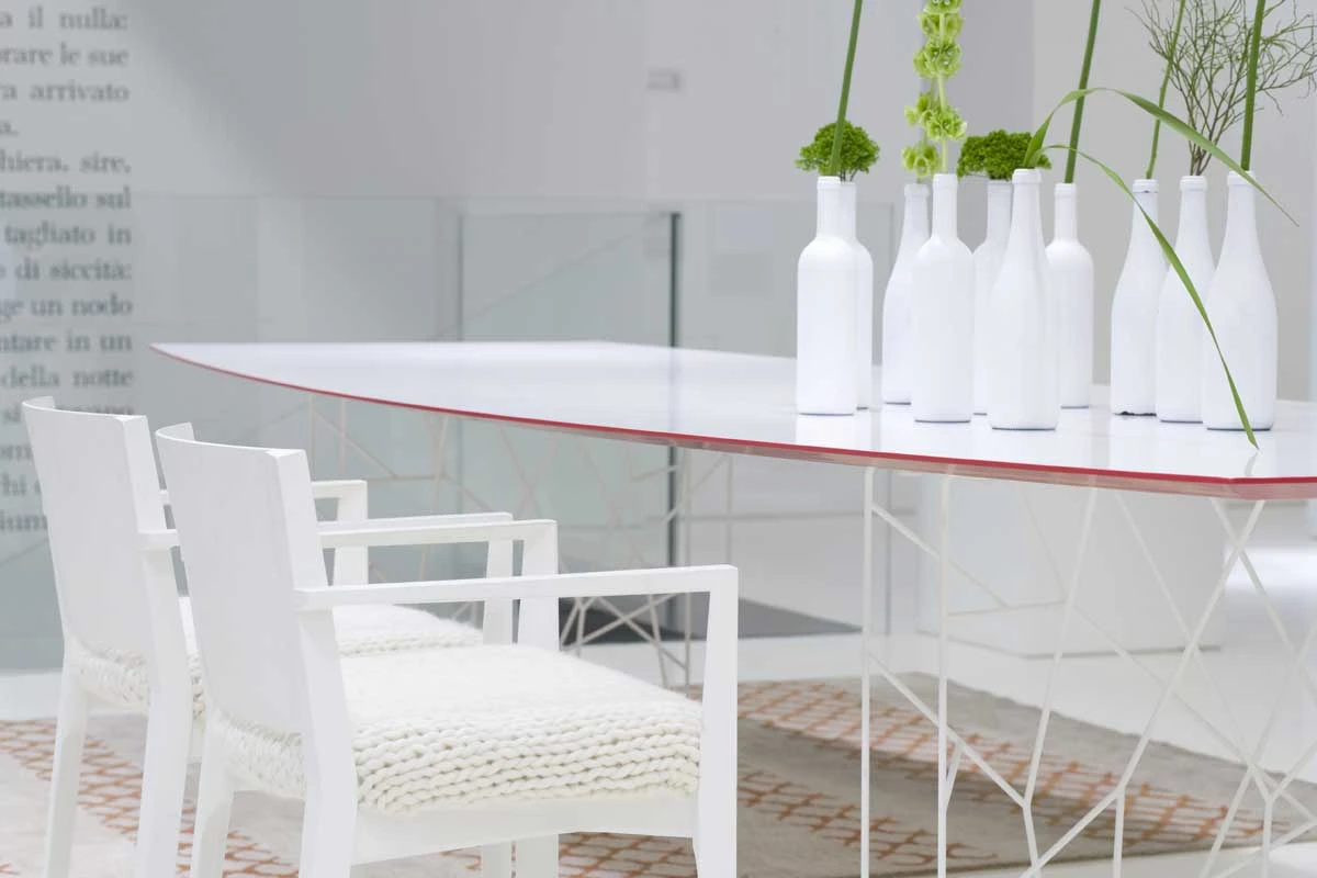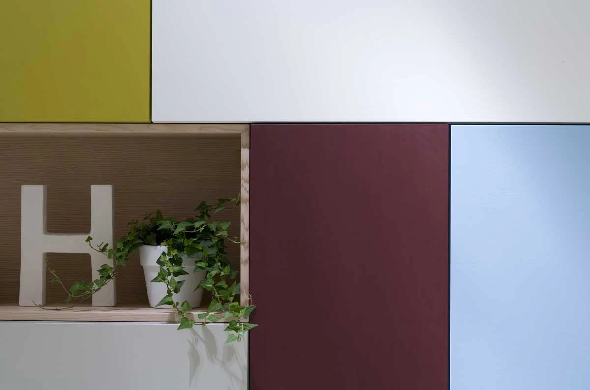 And this is how the modular structure of Modern changes into a game of shapes and colours; the Synapsis table becomes a graphic sign through the use of red and white; the Endless bookcase is covered with wall paper; the Unite D chest of drawers is subjected to "works in progress". And that's not all: the Truffle chair is coloured in face powder pink like an elegant duvet; the Lipla bed changes its suit, selecting an original fabric; the Nouvelle Vague chaise-longue carries traces of cine-film frames; a Load It composition is cracked and aged over ash blue tones.
